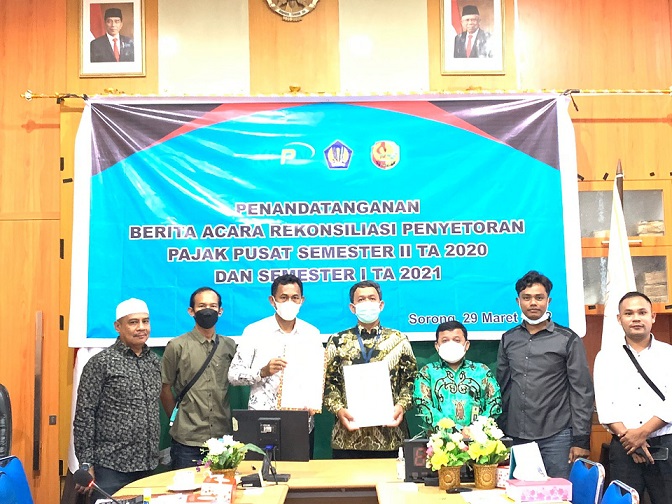 Kantor Pelayanan Pajak (KPP) Pratama Sorong bersama Kantor Pelayanan Perbendaharaan Negara (KPPN) Sorong dan Badan Pendapatan, Pengelolaan Keuangan dan Aset Daerah (BPPKAD) Kabupaten Fakfak menyelenggarakan kegiatan penandatanganan berita acara rekonsiliasi dan kertas kerja rekonsiliasi pajak (Selasa, 29/03). Kegiatan ini bertempat di ruang rapat KPP Pratama Sorong, Kota Sorong, Papua Barat.