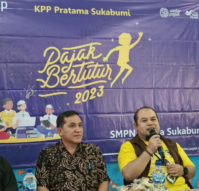 Kantor Pelayanan Pajak (KPP) Pratama Sukabumi menggelar kegiatan Pajak Bertutur tahun 2023 di Sekolah Menengah Pertama Negeri (SMPN) 2 Kota Sukabumi, Jl. Ir. H. Juanda No. 14, Cikole, Kota Sukabumi, Jawa Barat (Kamis, 27/7). Acara dengan tema “Sadar Pajak, Bukti Peduli pada Negeri” ini diikuti sejumlah 165 siswa.