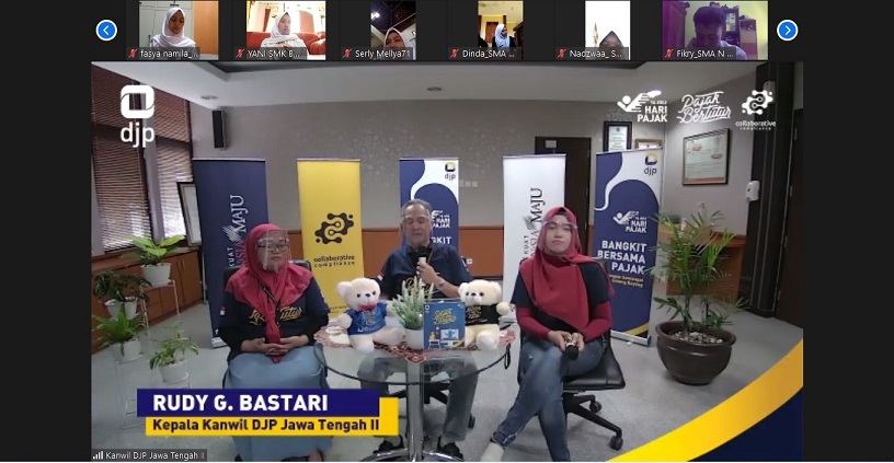 KPP Pratama Sukoharjo bersama Kanwil DJP Jawa Tengah II dan 2 KPP lainnya turut menyemarakkan Hari Pajak 14 Juli dengan menyelenggarakan kegiatan Pajak Bertutur (Patur) secara daring melalui aplikasi Zoom di KPP Pratama Sukoharjo (Rabu, 15/07). Kegiatan ini diikuti oleh siswa-siswi dari SMA 3 Sukoharjo, SMA 2 Purwokerto, SMA 1 Surakarta, SMA 1 Candiroto, dan SMK Bhumi Pala Parakan.