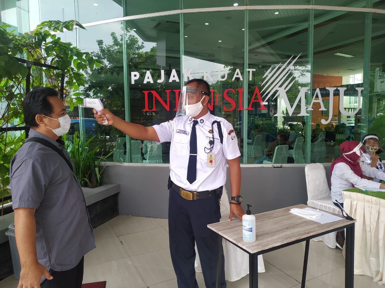 Protokol pertama yang diterapkan adalah kewajiban mencuci tangan bagi pegawai dan wajib pajak sebelum beraktivitas. Selanjutnya, pegawai dan wajib pajak akan diperiksa suhu tubuhnya untuk menentukan apakah yang bersangkutan diizinkan memasuki kantor atau tidak. Pegawai dan wajib pajak yang diperbolehkan memasuki kantor pajak adalah pegawai dan wajib pajak dengan suhu tubuh di bawah 38oC sedangkan pegawai dan wajib pajak yang memiliki suhu di atas 38oC tidak diizinkan memasuki kantor pajak.