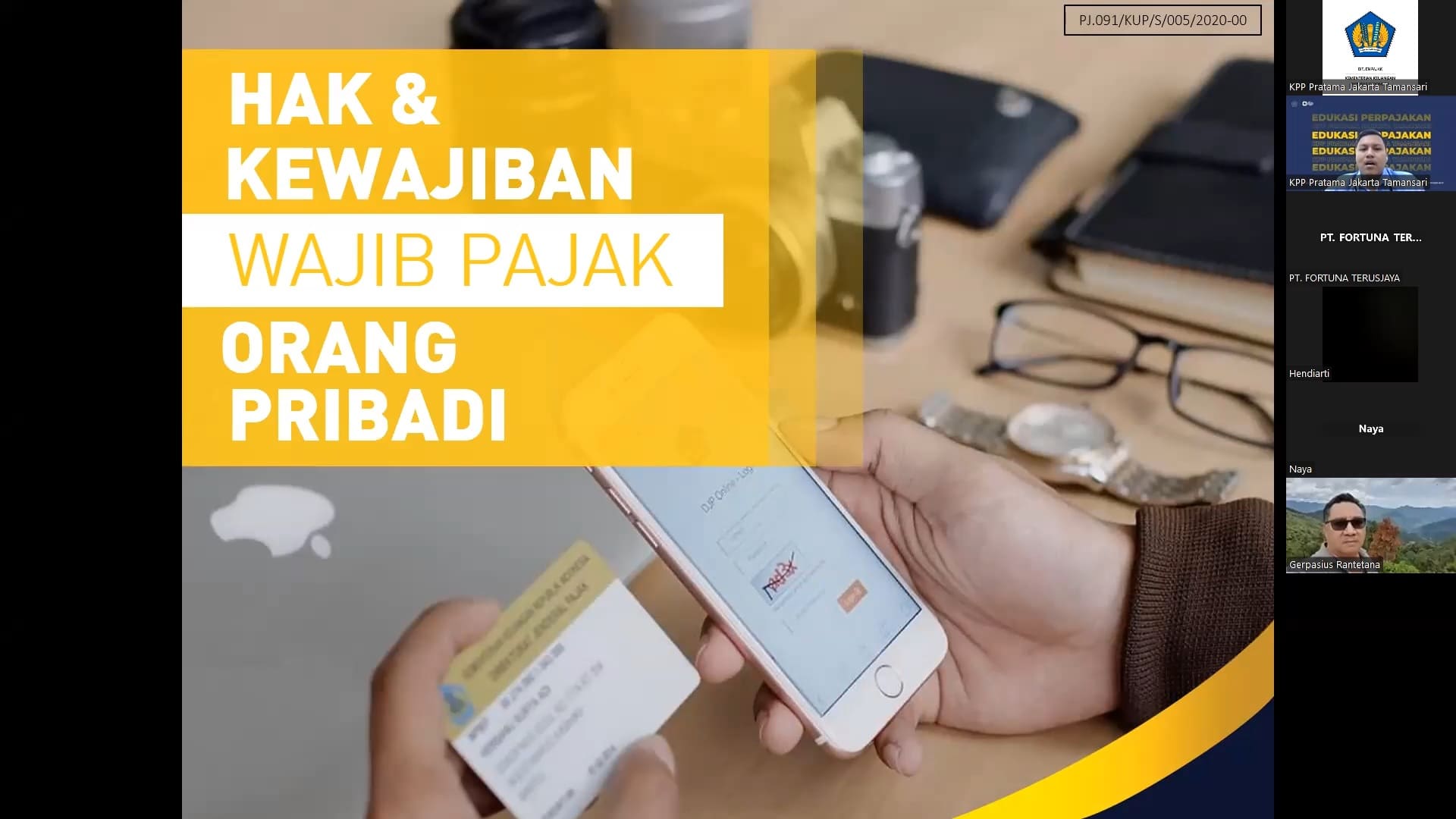 KPP Pratama Jakarta Tamansari kembali mengadakan sosialisasi dengan tema Hak dan Kewajiban Perpajakan Wajib Pajak Orang Pribadi secara daring kepada wajib pajak yang tidak melaksanakan kewajiban perpajakannya baik dalam hal pembayaran maupun pelaporan selama dua tahun terakhir, Jakarta (Rabu, 09/11).