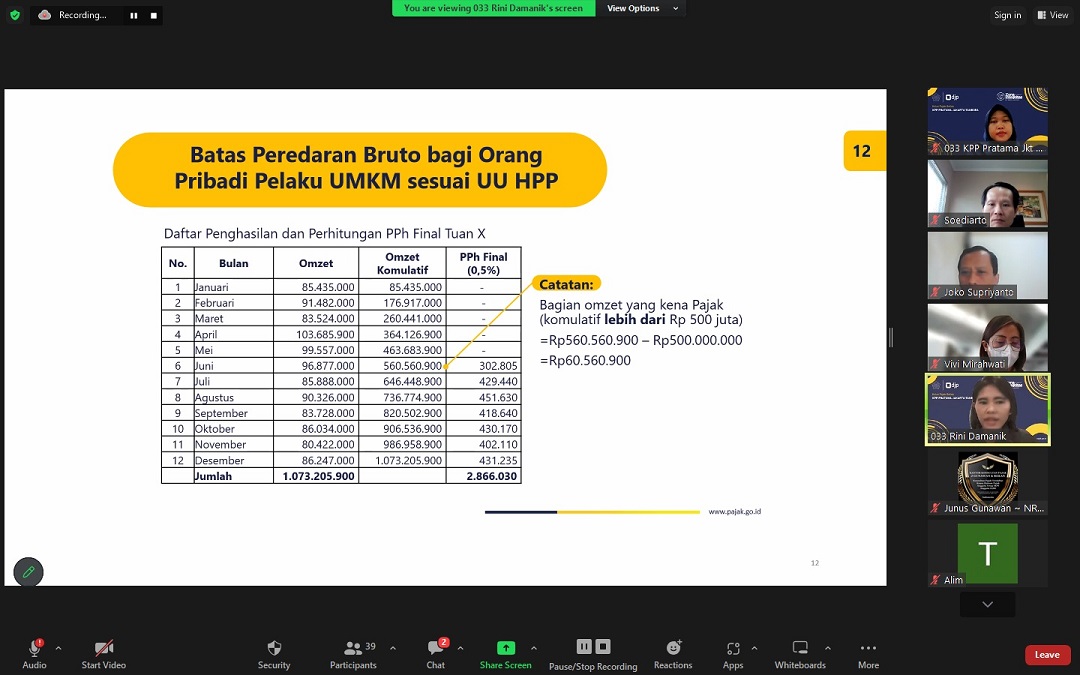 Kantor Pelayanan Pajak (KPP) Pratama Jakarta Tambora mengadakan kelas pajak kepada Wajib Pajak Orang Pribadi UMKM secara daring melalui aplikasi zoom di KPP Pratama Jakarta Tambora, Tambora, Jakarta Barat (Rabu, 27/9).