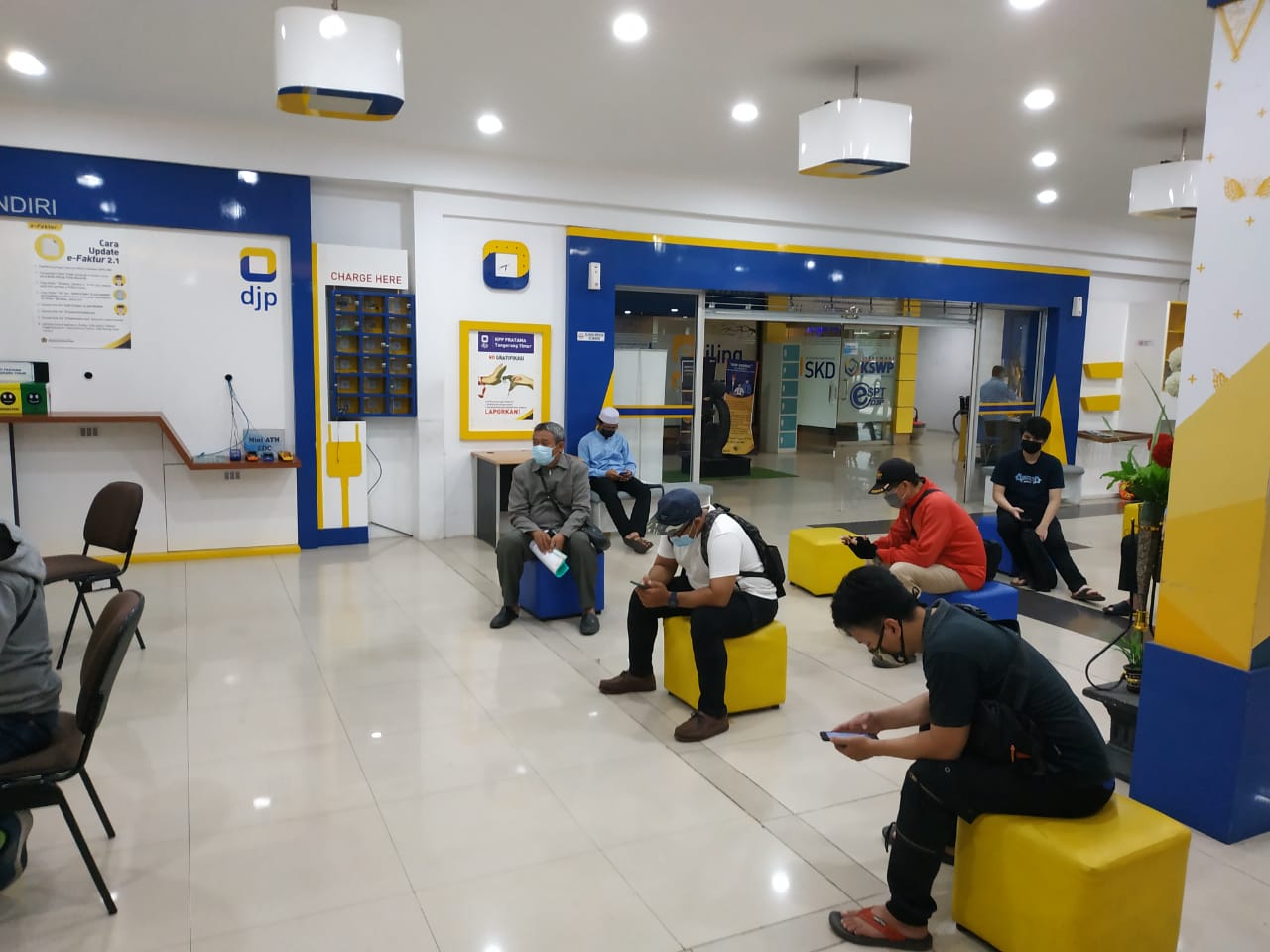 Kantor Pelayanan Pajak (KPP) Pratama Tangerang Timur memberikan layanan tatap muka dengan menerapkan protokol kesehatan secara ketat kepada wajib pajak yang hendak menyampaikan SPT Tahunannya di ruang layanan Helpdesk KPP Pratama Tangerang Timur, Kota Tangerang (Senin, 30/5).