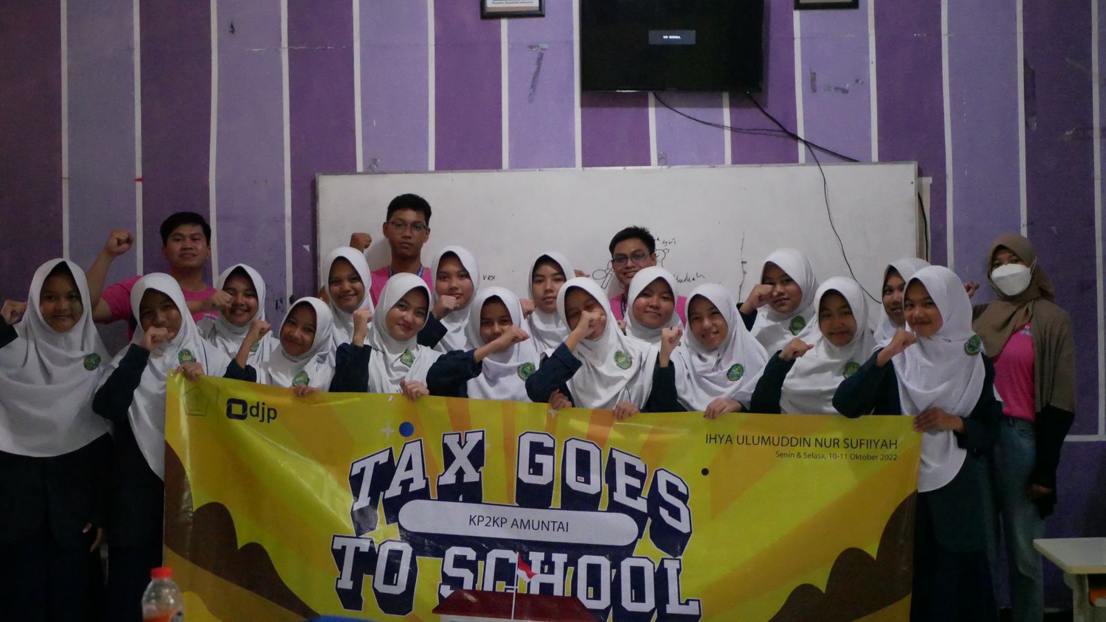 KPP Pratama Tanjung bersama dengan KP2KP Amuntai menyelenggarakan kegiatan Tax Goes to School (TGTS) di SMP Islam Ihya Ulumuddin Nur Sufiiyah di Kecamatan Banjang, Kabupaten Hulu Sungai Utara (Senin, 10/10). Acara yang diikuti oleh 60 siswa-siswi kelas 9 ini diselenggarakan selama 2 hari, mulai tanggal 10 Oktober s.d 11 Oktober 2022. Acara TGTS ini mengaungkan tema Generasi Muda Sadar Pajak.