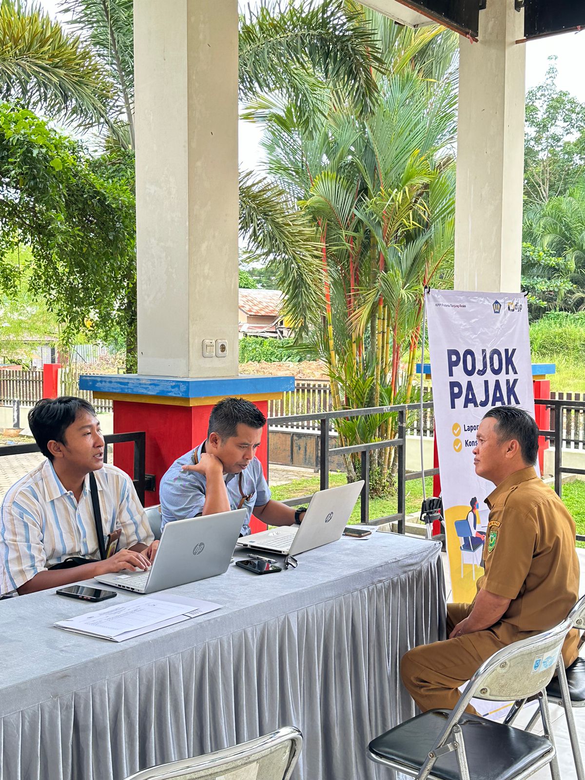Aris Widya Permana dan Didik Prasetyo selalu Account Representative (AR) Seksi Pengawasan II Kantor Pelayanan Pajak (KPP) Pratama Tanjung Redeb mengadakan layanan pojok pajak di Kantor Kecamatan Tanjung Redeb, Tanjung Redeb, Kab. Berau, Kalimantan Timur (Selasa, 19/3).