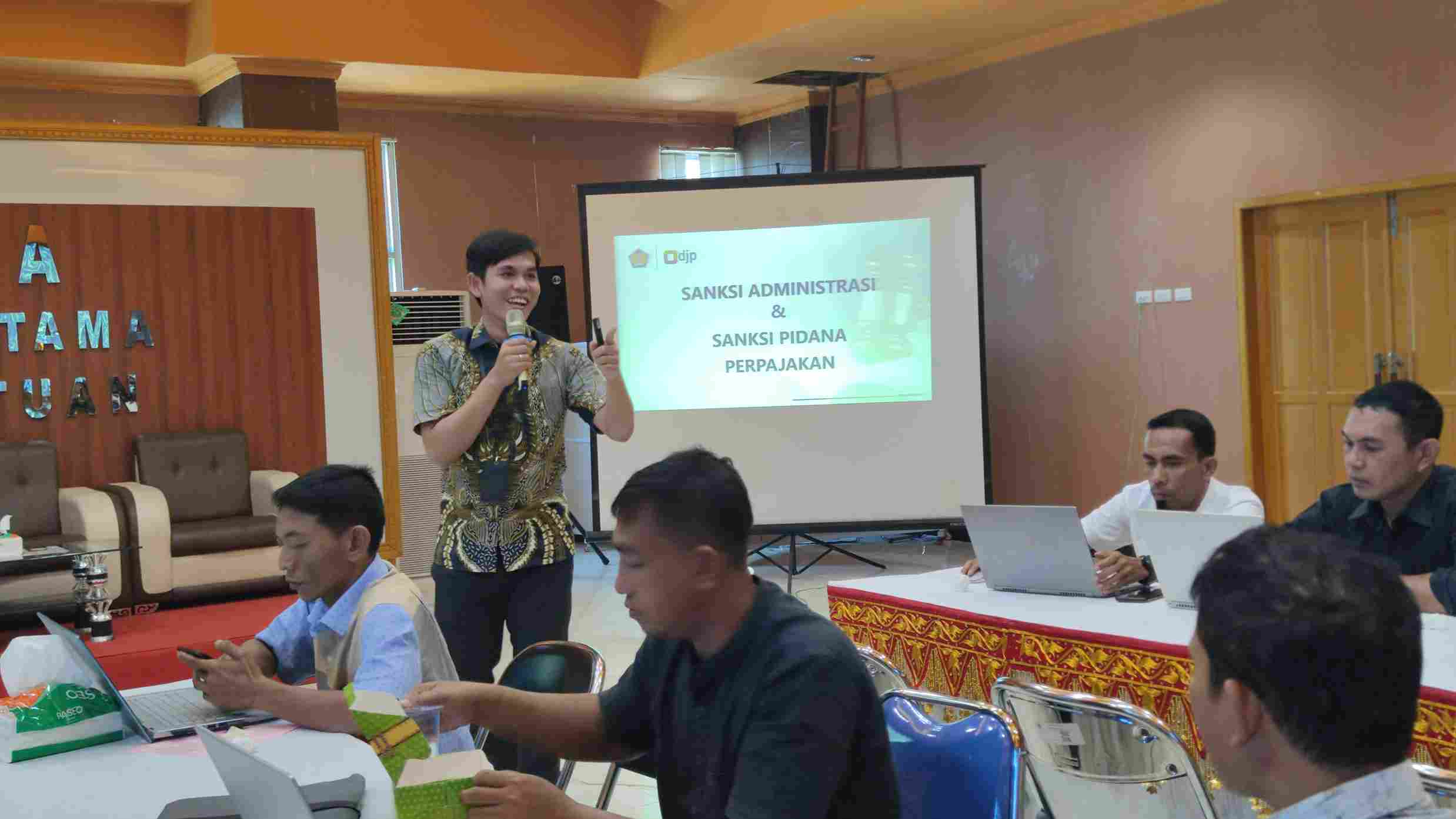 Kantor Pelayanan Pajak (KPP) Pratama Tapaktuan menyelenggarakan kegiatan Sosialisasi Perpajakan dan Bimbingan Teknis (Bimtek) Pelaporan SPT Masa dengan e-Bupot Unifikasi Instansi Pemerintah (Jumat, 4/8). Acara ini berlangsung selama lima hari (31 Juli s.d. 4 Agustus 2023) di Aula Lantai 3 KPP Pratama Tapaktuan, Aceh.