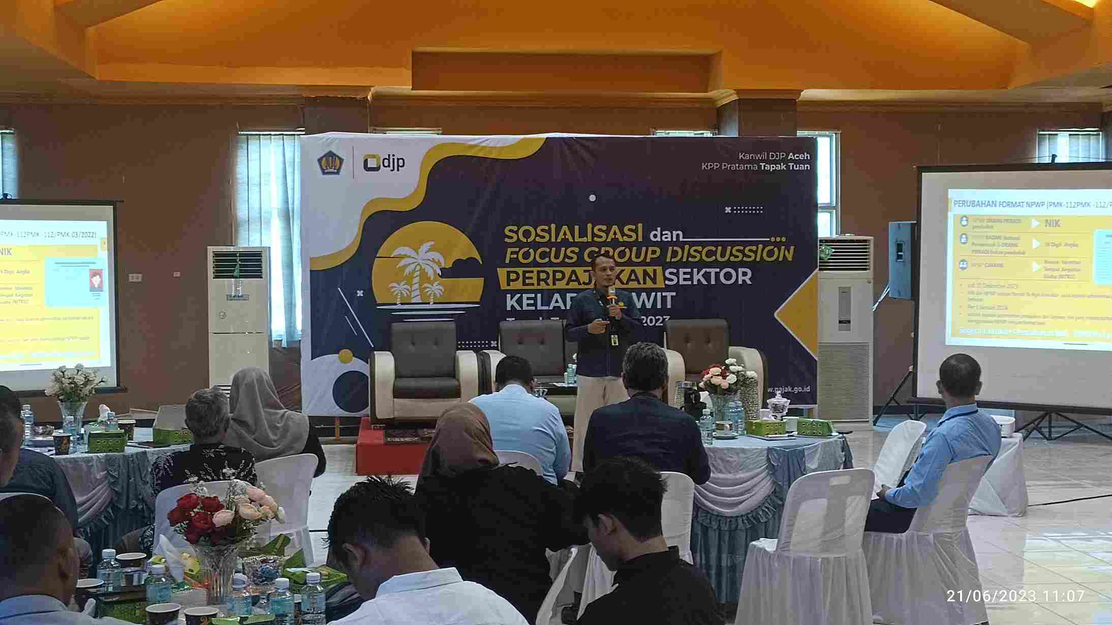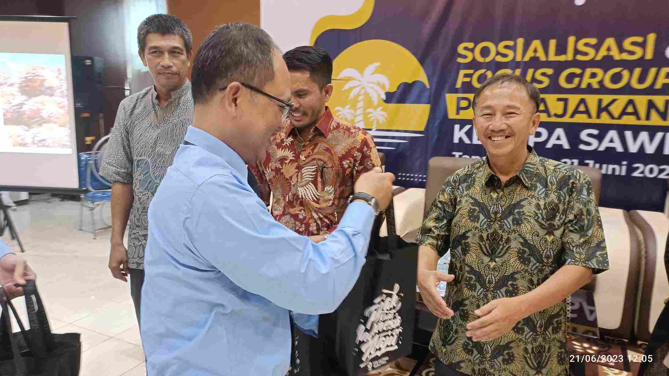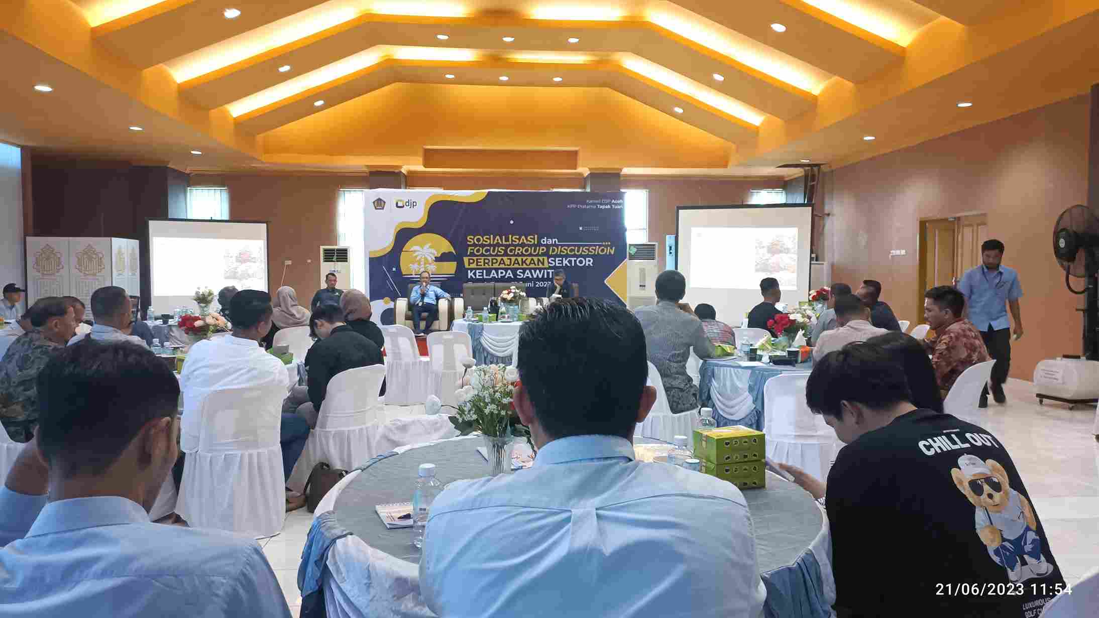 Kantor Pelayanan Pajak (KPP) Pratama Tapaktuan bersama Kantor Wilayah Direktorat Jenderal Pajak (Kanwil DJP) Aceh mengadakan kegiatan sosialisasi dan Focus Group Discussion (FGD) mengenai perpajakan sektor kelapa sawit (Rabu, 21/6). Kegiatan yang diselenggarakan di Aula KPP Pratama Tapaktuan ini dihadiri oleh para wajib ajak pengumpul, petani, pemilik kebun, dan pemilik pabrik kelapa sawit dari wilayah Kabupaten Aceh Selatan dan Kabupaten Aceh Barat Daya. Tak hanya itu, Kepala Kanwil DJP Aceh Imanul Hakim turut hadir dalam acara bersama Kepala KPP Pratama Banda Aceh Lusi Yuliani, Kepala KPP Pratama Langsa Benito Ikrar, Kepala Bidang Pendaftaran, Ekstensifikasi, dan Penilaian Benny Parlaungan Sialagan, dan Fungsional Penyuluh Kantor Wilayah Direktorat Jenderal Pajak Aceh Faisal Azni.