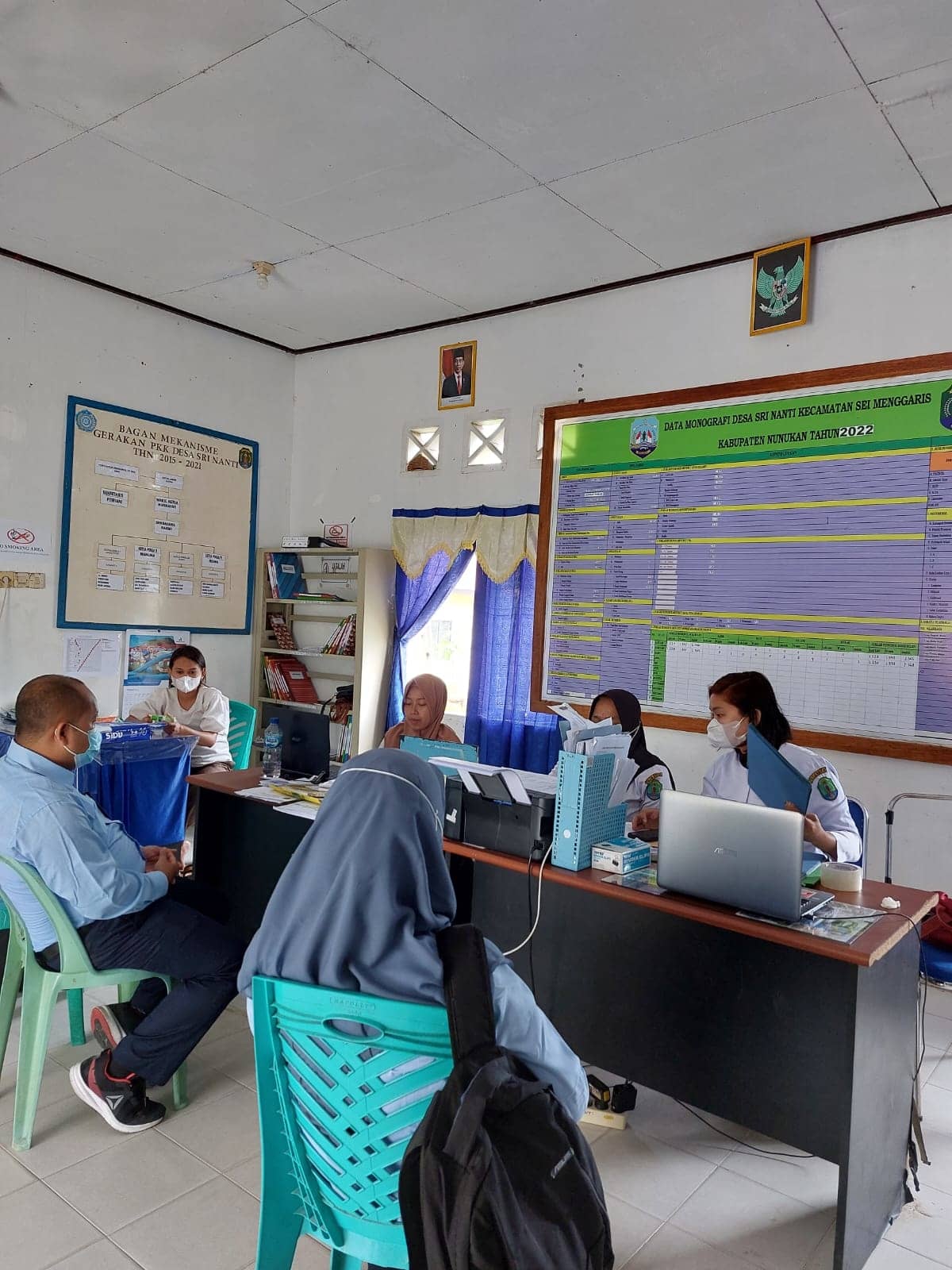 Tim Kantor Pelayanan Pajak (KPP) Pratama Tarakan terdiri dari Irawan, Kepala Seksi Pengawasan IV KPP Pratama Tarakan, dan Account Representative Seksi Pengawasan IV KPP Pratama Tarakan Wulan dan Firas melakukan pemonitoran dan pengevaluasian pemungutan pajak atas dana desa di Kantor Desa Srinanti, Kab. Nunukan (Rabu, 11/5).