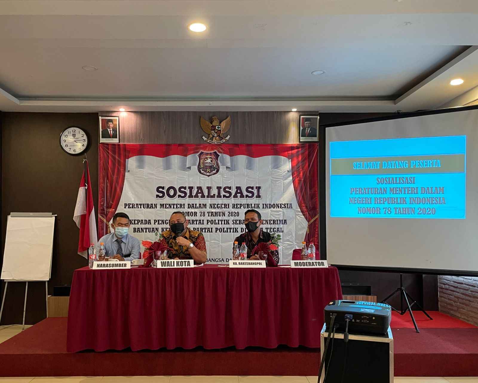 Kantor Pelayanan Pajak (KPP) Pratama Tegal dan Badan Kesatuan Bangsa dan Politik (Bakesbangpol) Kota Tegal mengadakan edukasi terkait Peraturan Menteri Dalam Negeri Republik Indonesia No 78 tahun 2020 tentang Tata Cara Penghitungan, Penganggaran dalam Anggaran Pendapatan dan Belanja Daerah, dan Tertib Administrasi Pengajuan, Penyaluran, dan Laporan Pertanggungjawaban Penggunaan Bantuan Keuangan Partai Politik serta aspek perpajakan yang wajib dilakukan ketika mendapatkan bantuan keuangan yang bersumber dari Anggaran Pendapatan Belanja Negara/Daerah (APBN/APBD) di Hotel Grand Dian Guci, Tegal (Kamis, 11/11).