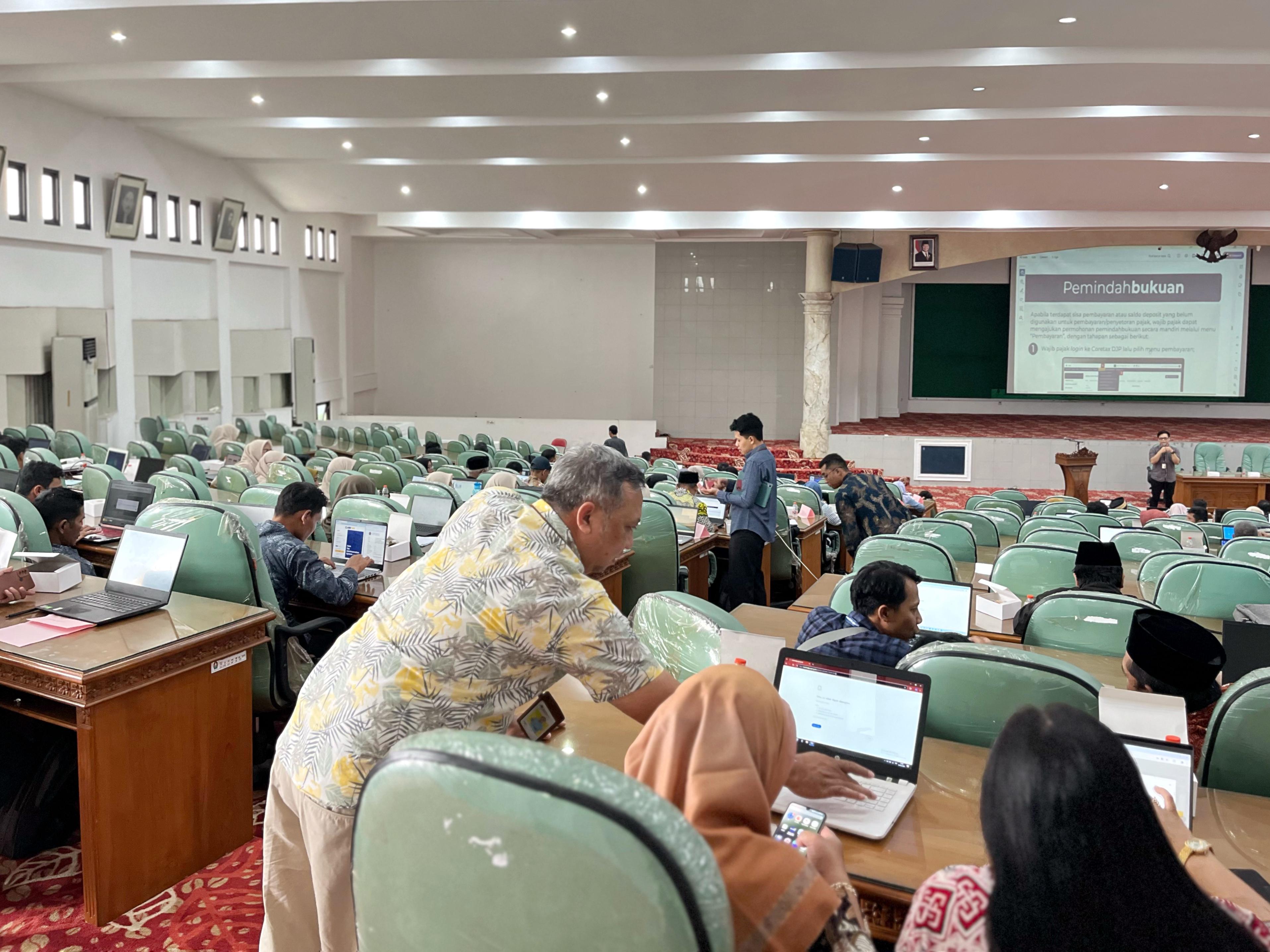 Kantor Pelayanan Pajak (KPP) Pratama Temanggung menggelar edukasi Coretax DJP bagi Instansi Pemerintah Desa se-Kabupaten Temanggung di Graha Bhumi Phala Komplek Perkantoran Bupati Temanggung (Selasa, 4/2). Kegiatan ini menjadi bagian dari In House Training (IHT) Pengelolaan Keuangan Desa bagi Bendahara Desa se-Kabupaten Temanggung Tahun 2025.