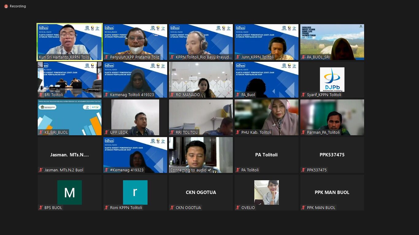 Dalam pelaksanaan kegiatan tersebut, KPPN Tolitoli mengundang Kantor Pelayanan Pajak (KPP) Pratama Tolitoli sebagai narasumber dalam penyampaian materi mengenai Kewajiban Perpajakan Bendahara secara daring menggunakan aplikasi Zoom Meeting di Kabupaten Tolitoli, Sulawesi Tengah.