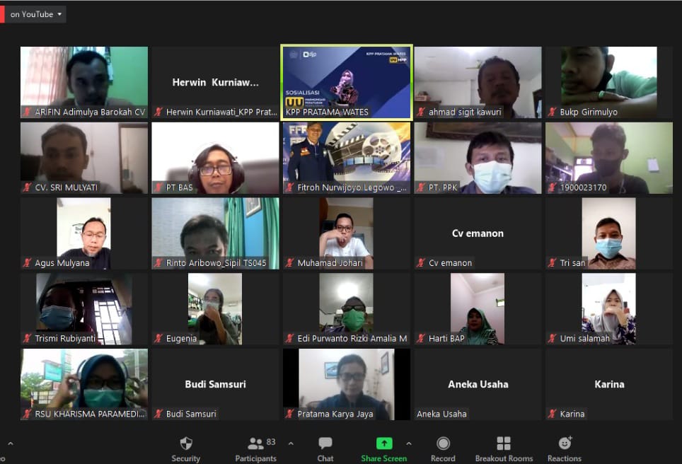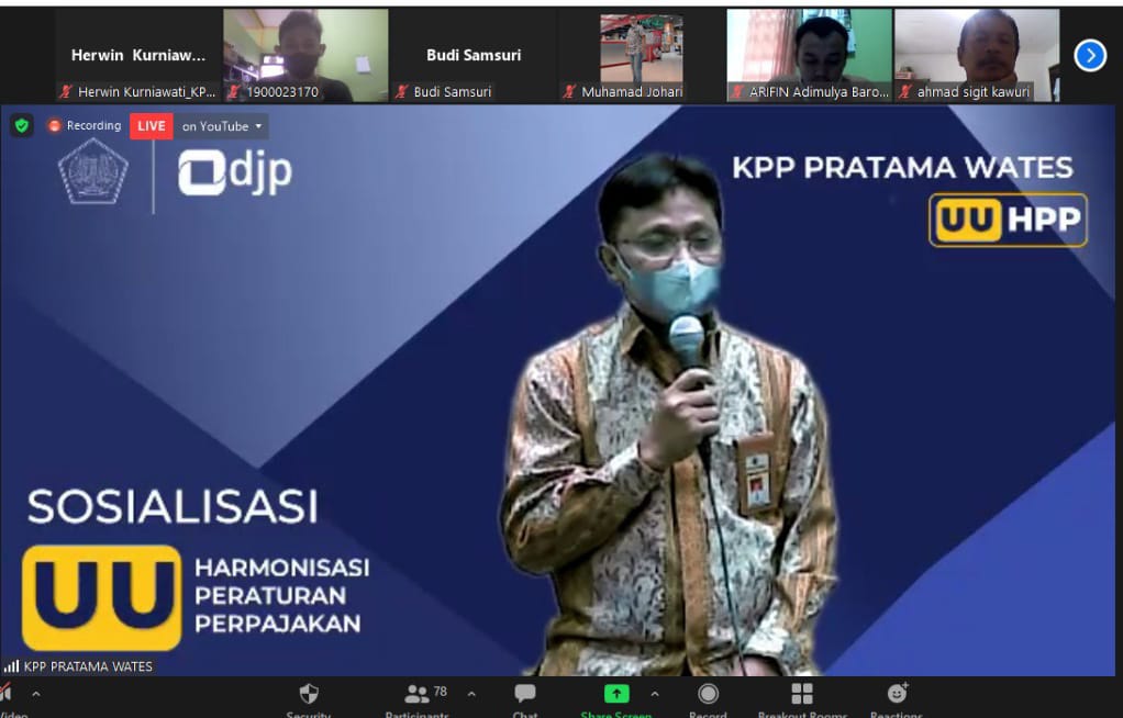 Kantor Pelayanan Pajak (KPP) Pratama Wates mengadakan edukasi Undang-Undang Nomor 7 Tahun 2021 tentang Harmonisasi Peraturan Perpajakan (UU HPP) secara daring di Kabupaten Kulon Progo (Selasa, 23/11). Kegiatan ini merupakan sepak mula (kick off) dari rangkaian edukasi UU HPP yang digelar tahun ini dan dihadiri oleh 86 wajib pajak strategis KPP Pratama Wates.