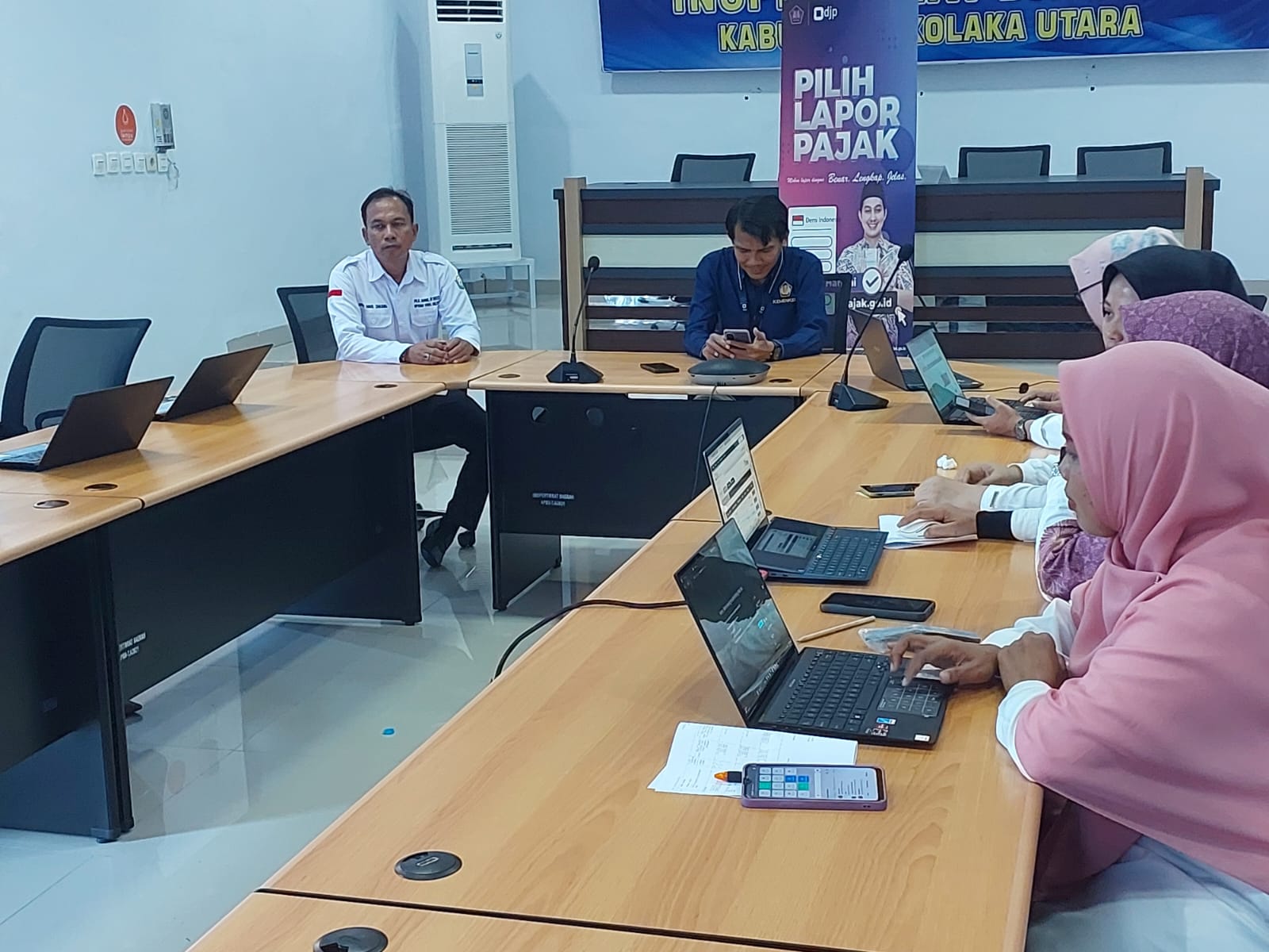 Kantor Pelayanan, Penyuluhan, dan Konsultasi Perpajakan (KP2KP) Lasusua melakukan kunjungan ke Inspektorat Kabupaten Kolaka Utara dalam rangka memberikan asistensi pelaporan SPT Tahunan kepada para pegawai di Lingkungan Inspektorat Kabupaten Kolaka Utara (Rabu, 24/1).