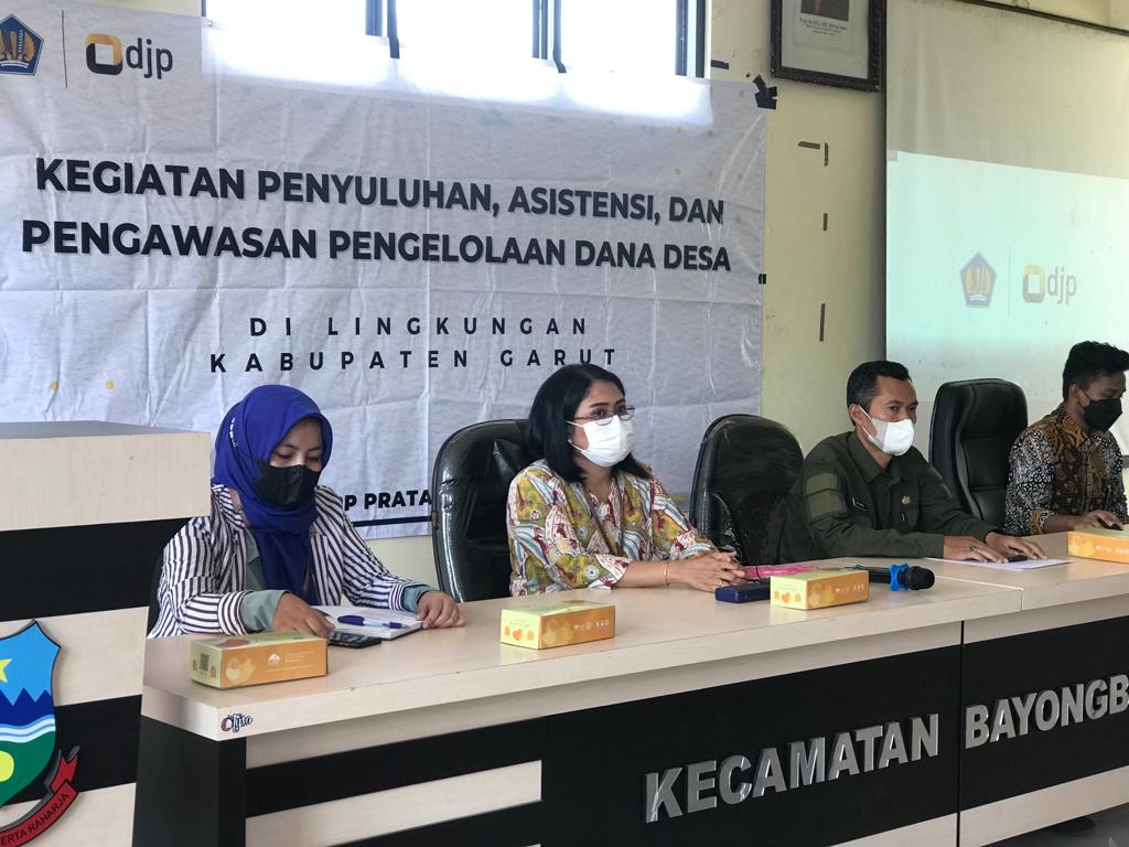 Kantor Pelayanan Pajak (KPP) Pratama Garut mengunjungi Kantor Kecamatan Bayongbong untuk melakukan penyuluhan, asistensi, dan pengawasan pengelolaan dana desa, di Aula Kantor Kecamatan Bayongbong, Jl. Raya Bayongbong No.119, Bayongbong, Kabupaten Garut, (Selasa, 27/9).