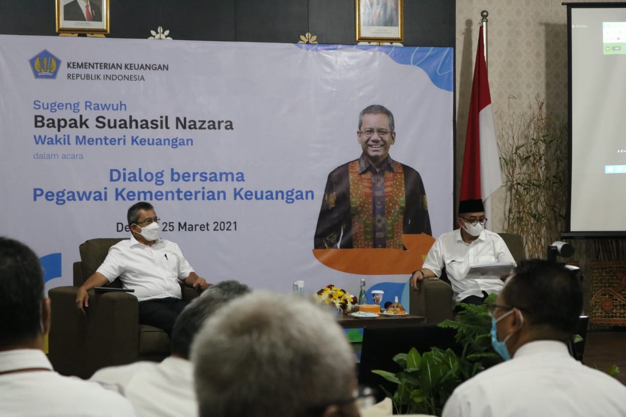 Didampingi oleh Staf Khusus Menteri Keuangan Yustinus Prastowo, Staf Ahli Bidang Penerimaan Negara Oza Olavia, Direktur Jenderal Pajak Suryo Utomo, dan Direktur Jenderal Kekayaan Negara Rionald Silaban, Wamenkeu RI berpesan kepada ribuan pegawai agar meningkatkan peran sinergi antar unit di Kementerian Keuangan dalam mengelola keuangan negara untuk memulihkan perekonomian Indonesia di masa pandemi Covid-19.