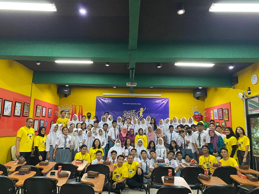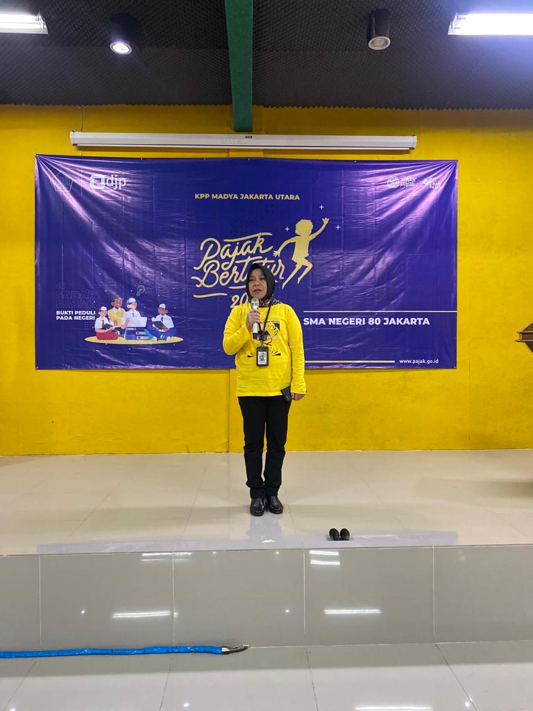 Kantor Pelayanan Pajak (KPP) Madya Jakarta Utara melaksanakan kegiatan Pajak Bertutur 2023 secara luring di Sekolah Menengah Atas (SMA) Negeri 80 Jakarta (Kamis, 27/7). Acara ini dipenuhi oleh lima puluh siswa-siswi SMA Negeri 80 Jakarta.