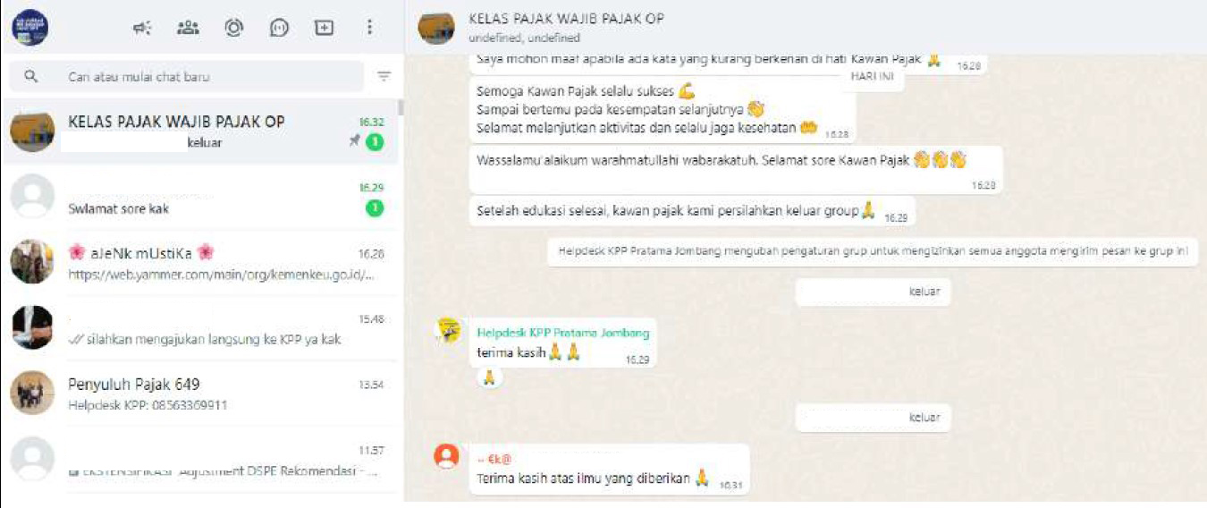 Eka, wajib pajak asal Kecamatan Bareng Kabupaten Jombang, berpartisipasi aktif dalam kelas pajak dengan materi hak dan kewajiban perpajakan orang pribadi (Rabu, 24/1). Kelas pajak yang dihadiri oleh 350 wajib pajak orang pribadi ini diselenggarakan oleh Kantor Pelayanan Pajak (KPP) Pratama Jombang secara daring.