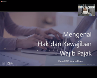 Kegiatan dilaksanakan secara daring melalui Zoom Cloud Meetings dihadiri Tim Penyuluh Pajak Kanwil DJP Jakarta Utara sebagai narasumber, Ketua Program Studi Akuntansi, dan dosen pengampu MKWU yang terdiri dari Agama, Pancasila, Kewarganegaraan, dan Bahasa Indonesia.