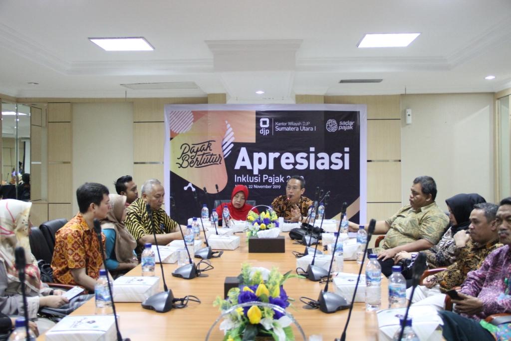 Kantor Wilayah (Kanwil) Direktorat Jenderal Pajak (DJP) Sumatera Utara I mengadakan kegiatan Pajak Bertutur 2019 di ruang rapat lantai 7 gedung Kanwil DJP Sumatera Utara I, Medan (Jumat, 22/11).