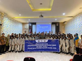 Tujuh puluh siswa Sekolah Menengah Kejuruan Negeri (SMKN) 1 Batealit mengikuti acara Office Tour di Aula Kantor Pelayanan Pajak (KPP) Pratama Jepara (Jumat, 19/5). Rombongan siswa yang didampingi oleh enam guru dari SMKN 1 Batealit hadir pada pukul 09.00 WIB dan diterima oleh Penyuluh Pajak KPP Pratama Jepara Praditya Happy.