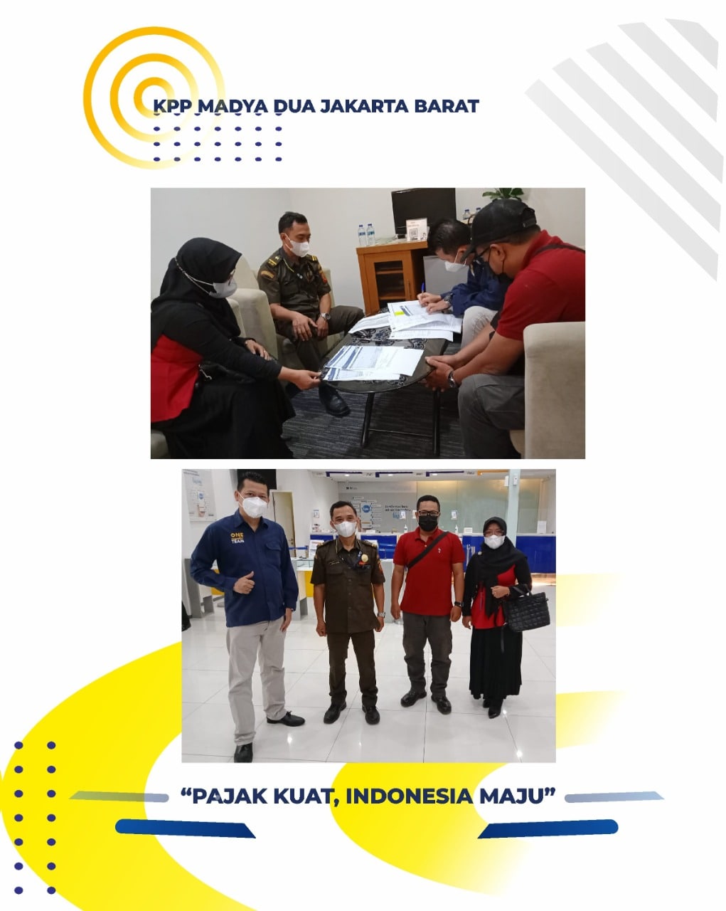 Dalam rangka optimalisasi penerimaan pajak melalui tindakan penagihan, Kantor Pelayanan Pajak (KPP) Madya Dua Jakarta Barat melaksanakan kegiatan pekan penagihan melalui pemblokiran rekening penunggak pajak. Madya Dua Jakarta Barat melakukan koordinasi dengan lembaga jasa keuangan di daerah Jakarta Barat (Kamis, 23/9).