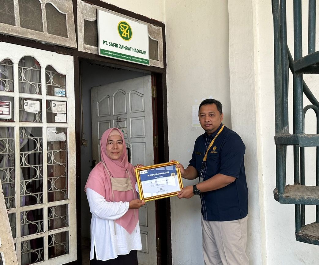Kunjungan kerja kemudian ditutup dengan sesi foto bersama dan pemberian piagam penghargaan serta suvenir kepada Nurhayati selaku perwakilan dari WP yang diberikan penghargaan.