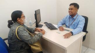 Vivin Zikrina mendatangi helpdesk Kantor Pelayanan Pajak (KPP) Pratama Denpasar Barat di Jalan Jl. Raya Puputan No.13, Dangin Puri Klod, Kecamatan Denpasar Timur, Kota Denpasar, (Rabu, 18/1). Kehadirannya di KPP Pratama Denpasar Barat untuk konsultasi penyampaian SPT Tahunan dan validasi NIK menjadi NPWP. Ia dilayani oleh Yudiana salah seorang Account Representative yang sedang bertugas di helpdesk.
