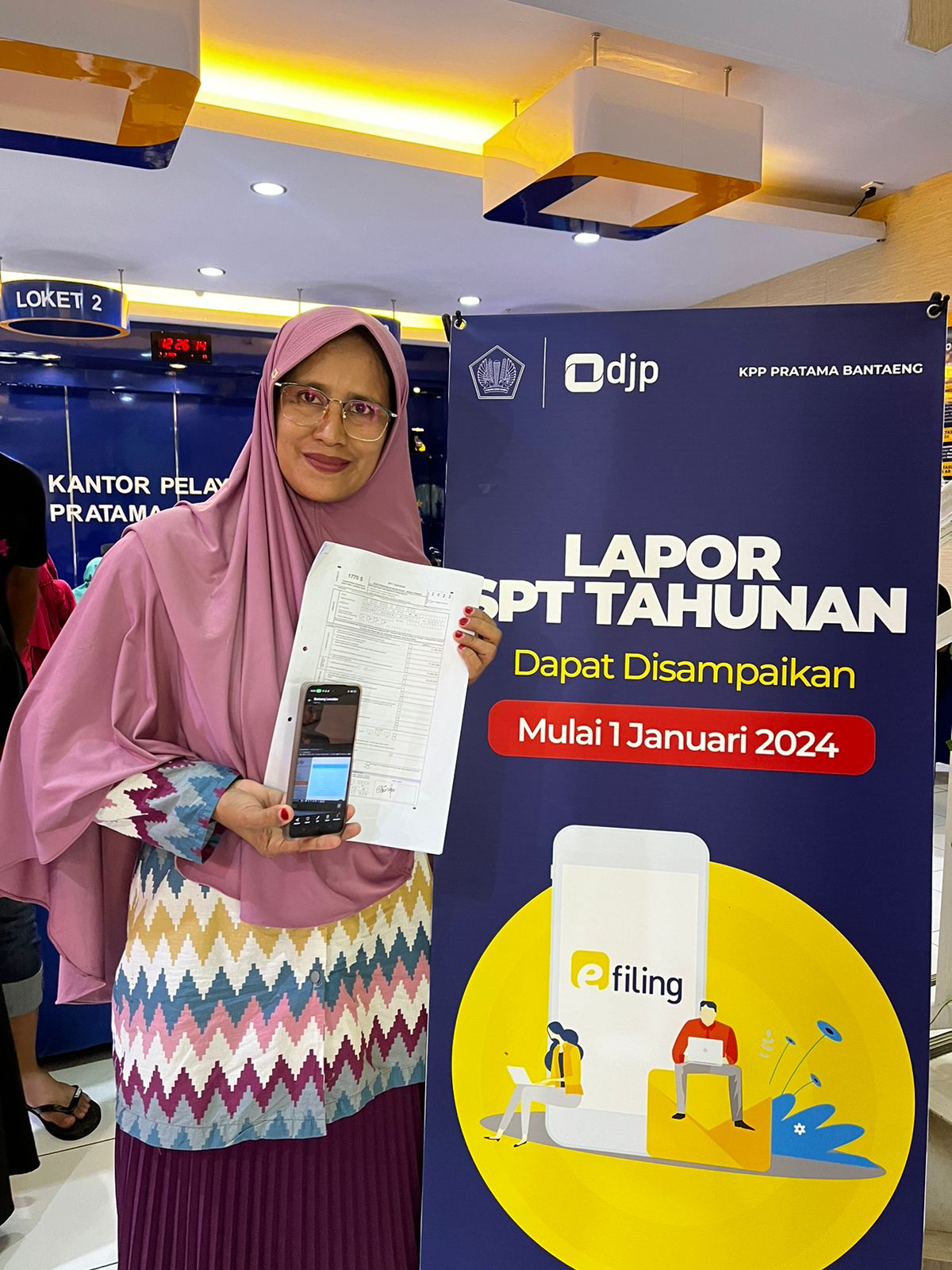 Petugas TPT KPP Pratama Bantaeng sigap memberikan pelayanan dengan menjelaskan cara pelaporan SPT Tahunan. “Sebelum melakukan pelaporan SPT Tahunan, wajib pajak harus memastikan bahwa dapat login di laman pajak.go.id. Apabila sudah dapat login wajib pajak dimohon untuk melakukan pengisian formulir SPT sampai terbit Bukti Penerimaan Elektronik (BPE) sebagai bukti bahwa SPT Tahunan sudah terlaporkan," jelas salah satu petugas TPT KPP Pratama Bantaeng.
