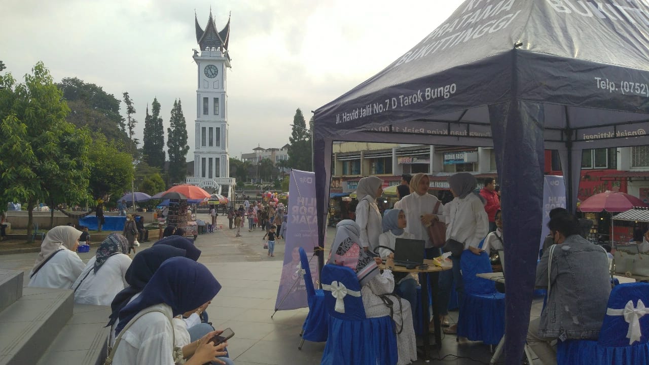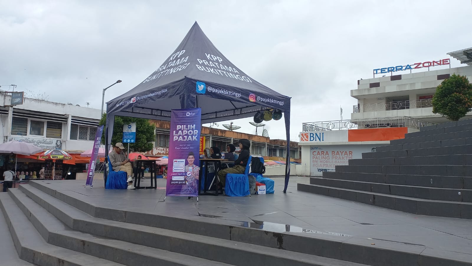 Pagi ini ada hal baru di seputaran Jam Gadang Bukittinggi di salah satu sudut dekat pintu masuk Pasa Ateh terdapat booth Pojok Pajak yang diadakan oleh Kantor Pelayanan Pajak (KPP) Pratama Bukittinggi (Sabtu, 24/2).