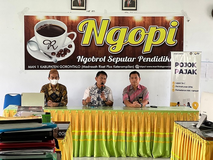 Kantor Pelayanan, Penyuluhan, dan Konsultasi Perpajakan (KP2KP) Limboto mengunjungi Madrasah Aliyah (MA) Negeri 1 Kabupaten Gorontalo (Senin, 6/3). Kegiatan ini untuk mendampingi jajaran guru, staf, dan Kepala MA Negeri 1 Kabupaten Gorontalo dalam melaksanakan kewajiban perpajakan berupa Pelaporan Surat Pemberitahuan (SPT) Tahunan secara daring melalui e-Filing dan juga Pemadanan Nomor Induk Kependudukan (NIK) menjadi Nomor Pokok Wajib Pajak (NPWP) sesuai dengan amanat Undang-Undang Harmonisasi Peraturan Perpajakan (UU HPP).