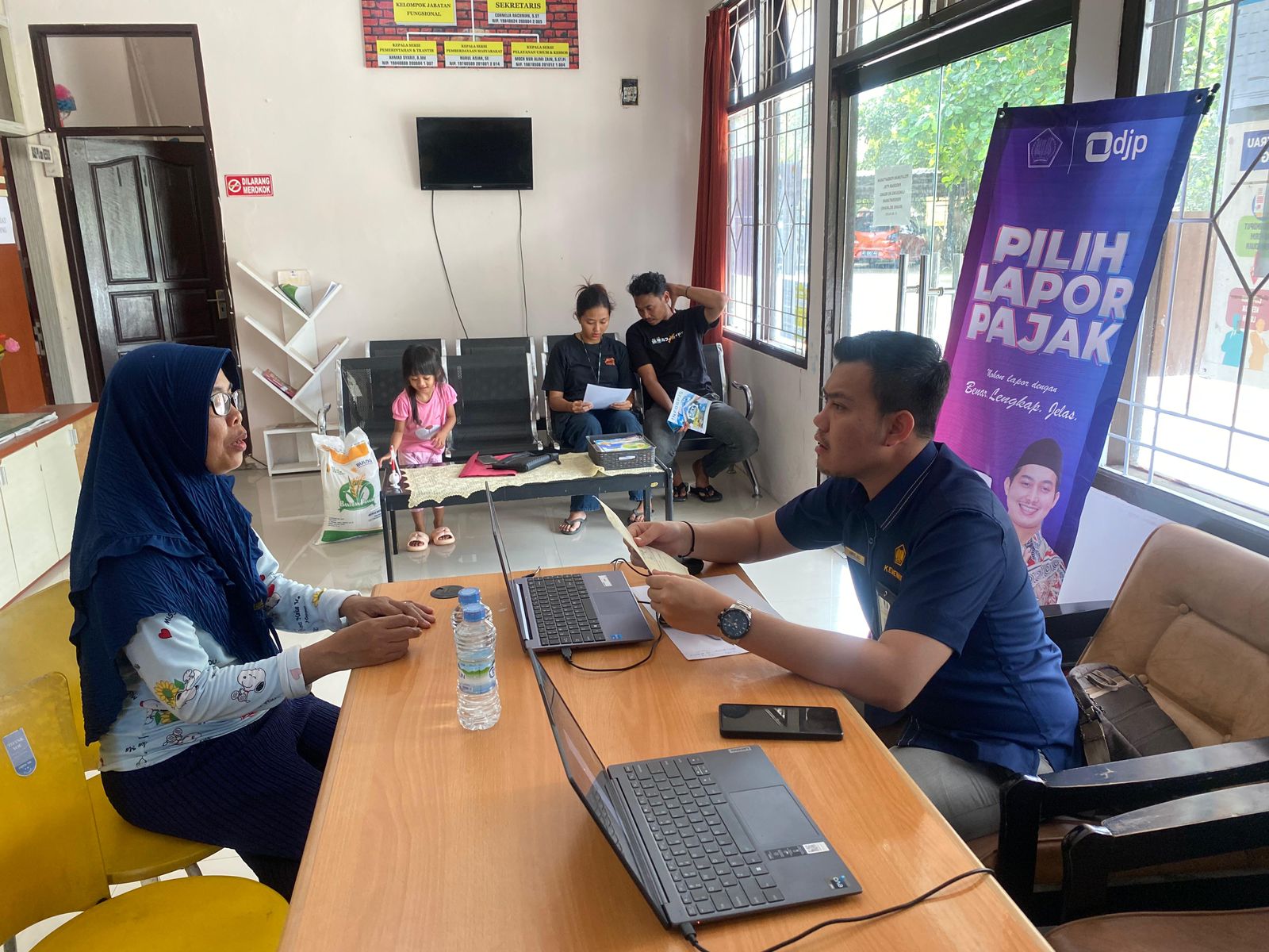 Membuka layanan pojok pajak selama empat jam dari pukul 08.00 WITA hingga 12.00 WITA, Amril dan Nugroho telah melayani sebanyak 35 wajib pajak yang terdiri dari pegawai Kantor Kelurahan Rinding dan juga masyarakat sekitar kantor kelurahan.