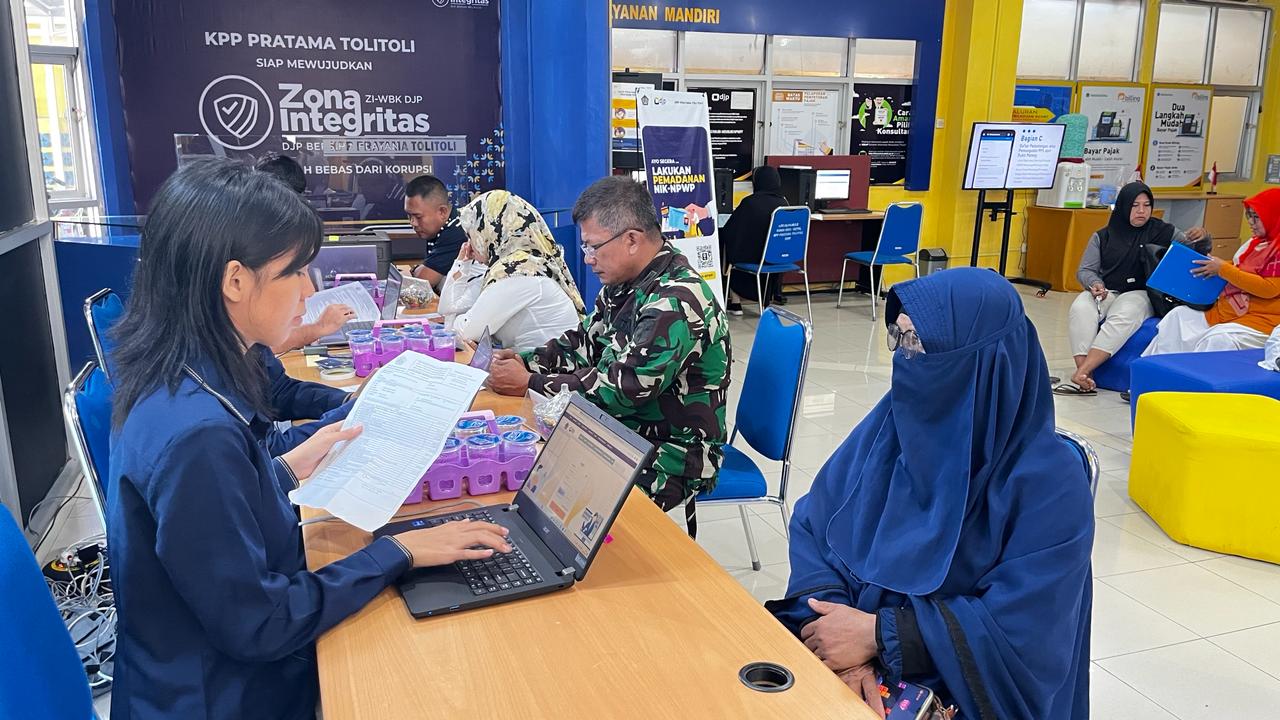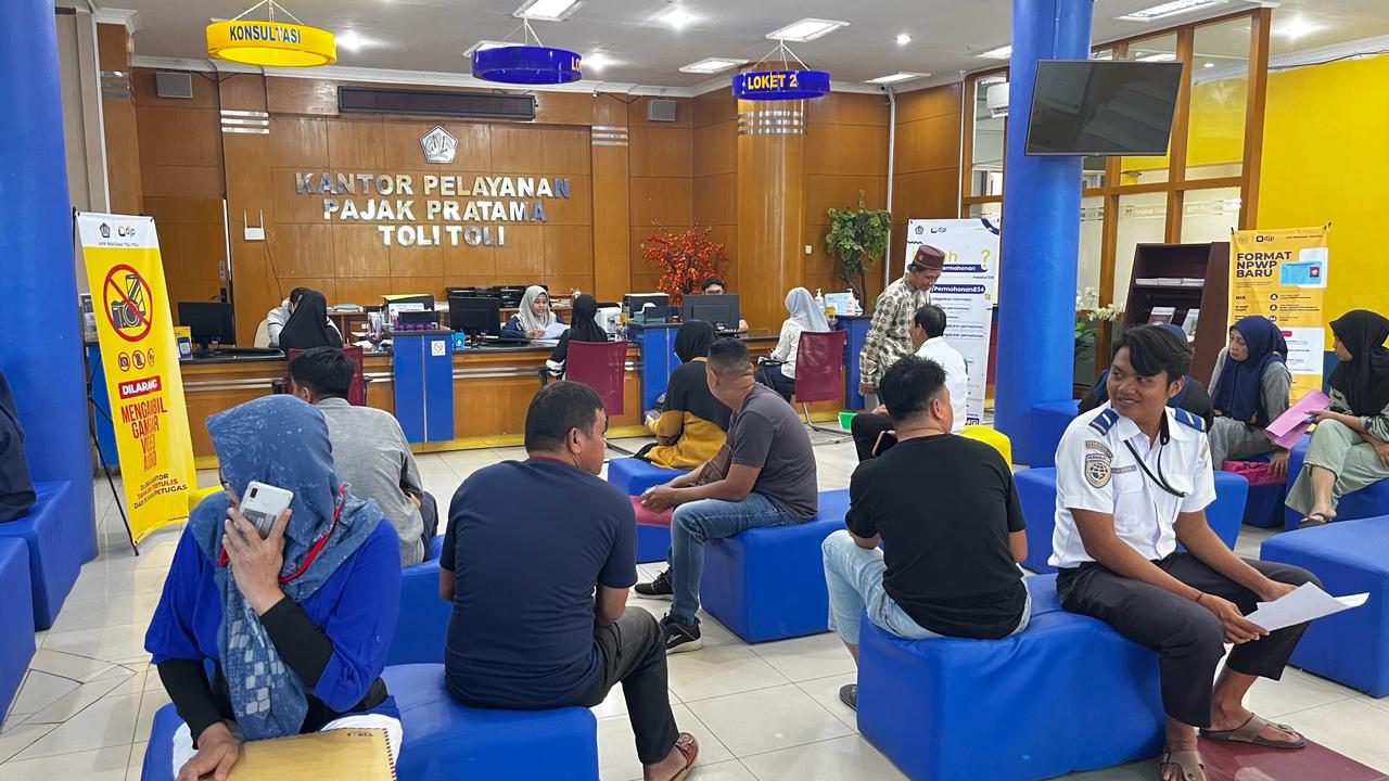 Kantor Pelayanan Pajak (KPP) Pratama Tolitoli dipenuhi oleh wajib pajak (Rabu, 7/2). Antrian wajib pajak ini menumpuk sejak pagi hingga sore hari. Wajib pajak berbondong-bondong datang untuk melaporkan Surat Pemberitahuan (SPT) Tahunan.