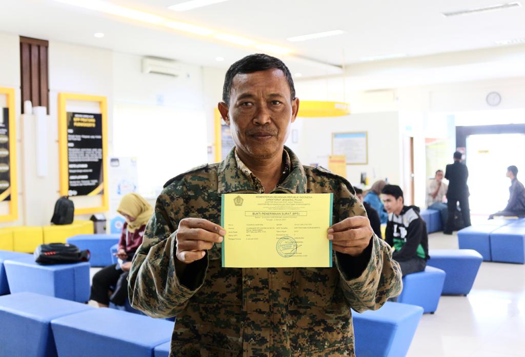 KPP Pratama Purwokerto kembali membuka layanan perpajakan pada pukul 08.00 WIB hingga 16.00 WIB, bertempat di Tempat Pelayanan Terpadu (TPT) Kantor, Purwokerto (Kamis, 2/1). Pelayanan pertama di tahun 2020 ini diberikan kepada Sukarjo Daryan, wajib pajak (WP) pelaku UMKM yang bergerak di bidang industri penggergajian kayu. Sukarjo datang ke KPP Pratama Purwokerto untuk melaporkan SPT Tahunan PPh Orang Pribadi Tahun Pajak 2019.