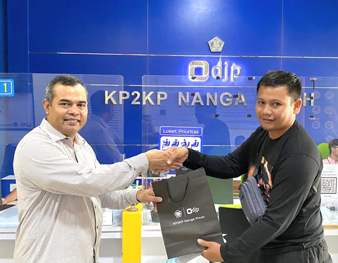 Yohanes, salah seorang pegawai satuan keamanan (Satpam) di salah satu perusahaan swasta di Kabupaten Melawi melakukan pelaporan surat pemberitahuan (SPT) tahunan untuk tahun pajak 2023 di tempat pelayanan terpadu Kantor Pelayanan, Penyuluhan, dan Konsultasi Perpajakan (KP2KP) Nanga Pinoh, Kabupaten Melawi (Selasa, 2/1). “Bapak yang pertama kali melaporkan SPT tahunan,” jelas Munawar Kholil kepada wajib pajak tersebut. Munawar Kholil selaku Kepala KP2KP Nanga Pinoh kemudian meminta wajib pajak tersebut untuk melakukan foto bersama.