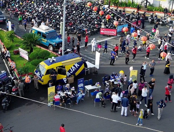 Acara yang berlangsung dari pukul 06.00 hingga 08.30 WIB ini juga dimeriahkan dengan pembagian hadiah, cendera mata, dan penyebaran leaflet edukasi perpajakan.