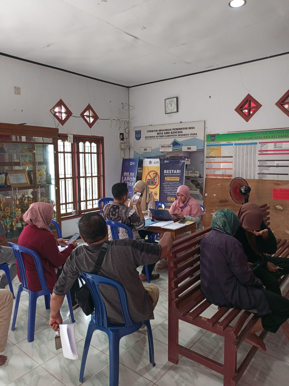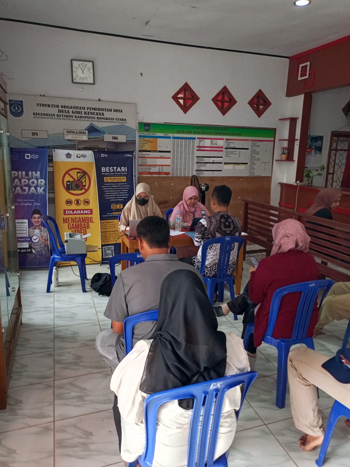 Kantor Pajak Bengkulu Satu bekerja sama dengan Kantor Desa Giri Kencana membuka Pos Pelayanan Pajak di Desa Giri Kencana, Kecamatan Ketahun, Kabupaten Bengkulu Utara (Kamis, 27/2). Pelayanan ini hadir untuk melayani wajib pajak di Kecamatan Ketahun dan sekitarnya yang mengalami kendala akses jarak yang cukup jauh ke kantor pajak terdekat.