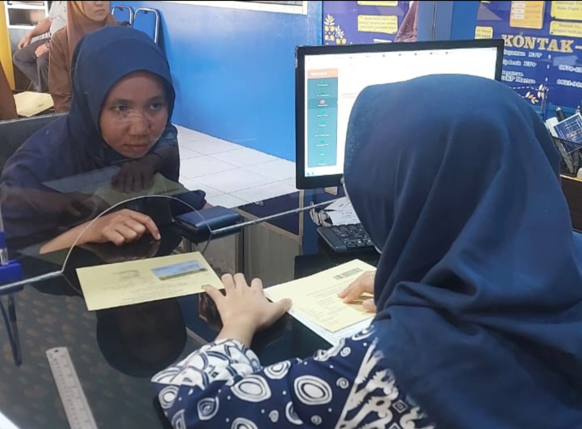 Petugas KP2KP Marisa Fista Aulia menanyai beberapa wajib pajak yang terlambat melakukan pelaporan SPT Tahunan tersebut.