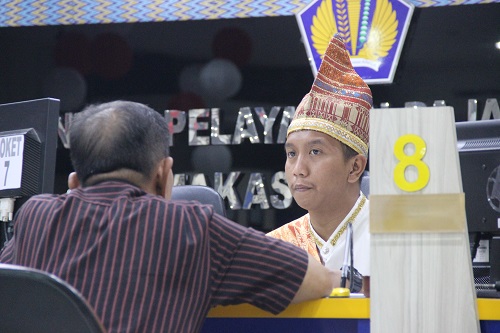Semangat kebhinekaan juga terlihat di KPP Pratama Makassar Selatan. Sebagai front liner di sebuah KPP, petugas TPT dan Help Desk KPP Pratama Makassar Selatan juga mengenakan pakaian adat ketika memberikan pelayanan kepada wajib pajak.