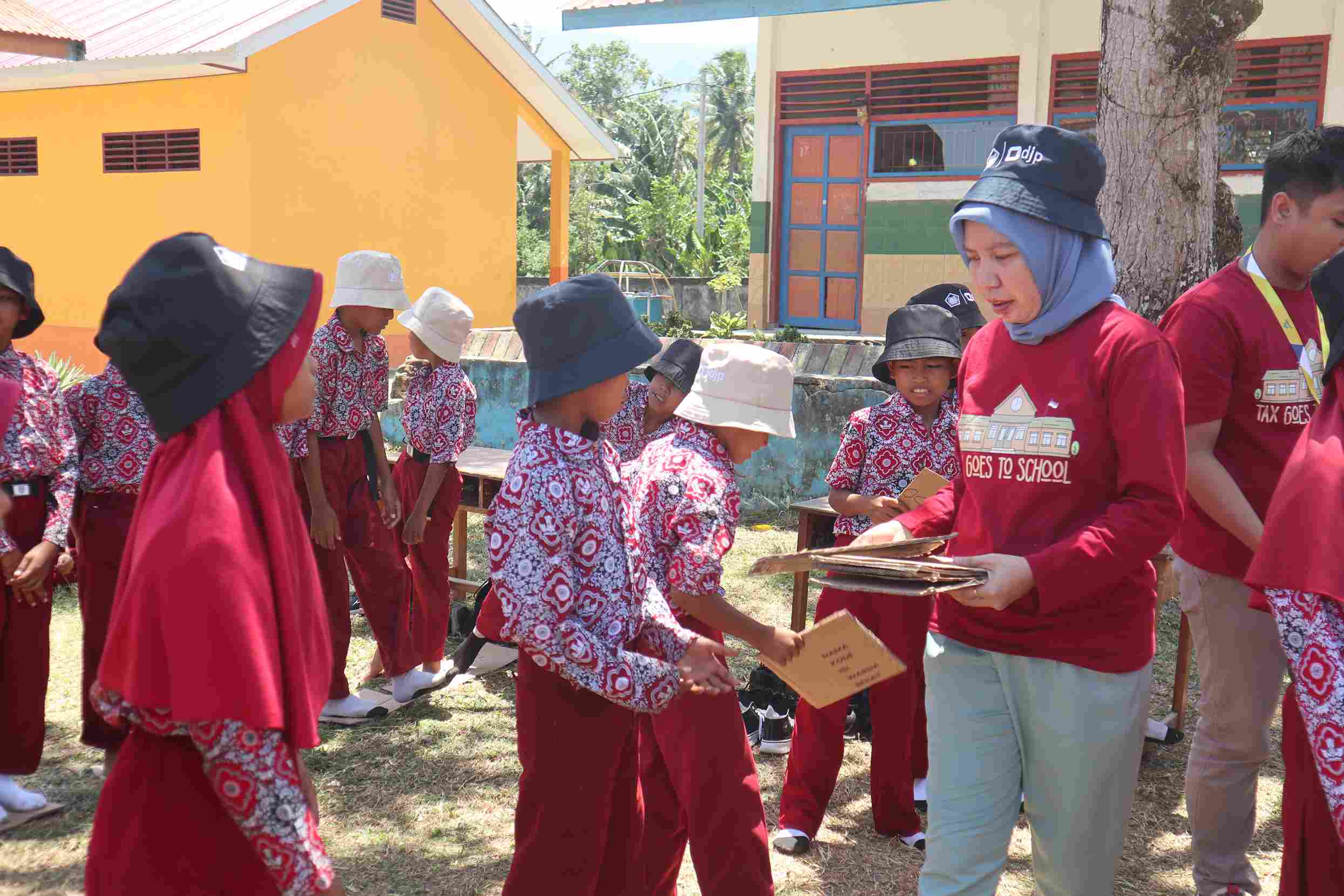 Kantor Pelayanan, Penyuluhan, dan Konsultasi Perpajakan (KP2KP) Pinrang mengadakan Tax Goes To School (TGTS) Tahun 2023 di Sekolah Dasar Negeri (SDN) 272 Desa Rajang, Kecamatan Lembang, Kabupaten Pinrang, Sulawesi Selatan (Rabu, 30/8).