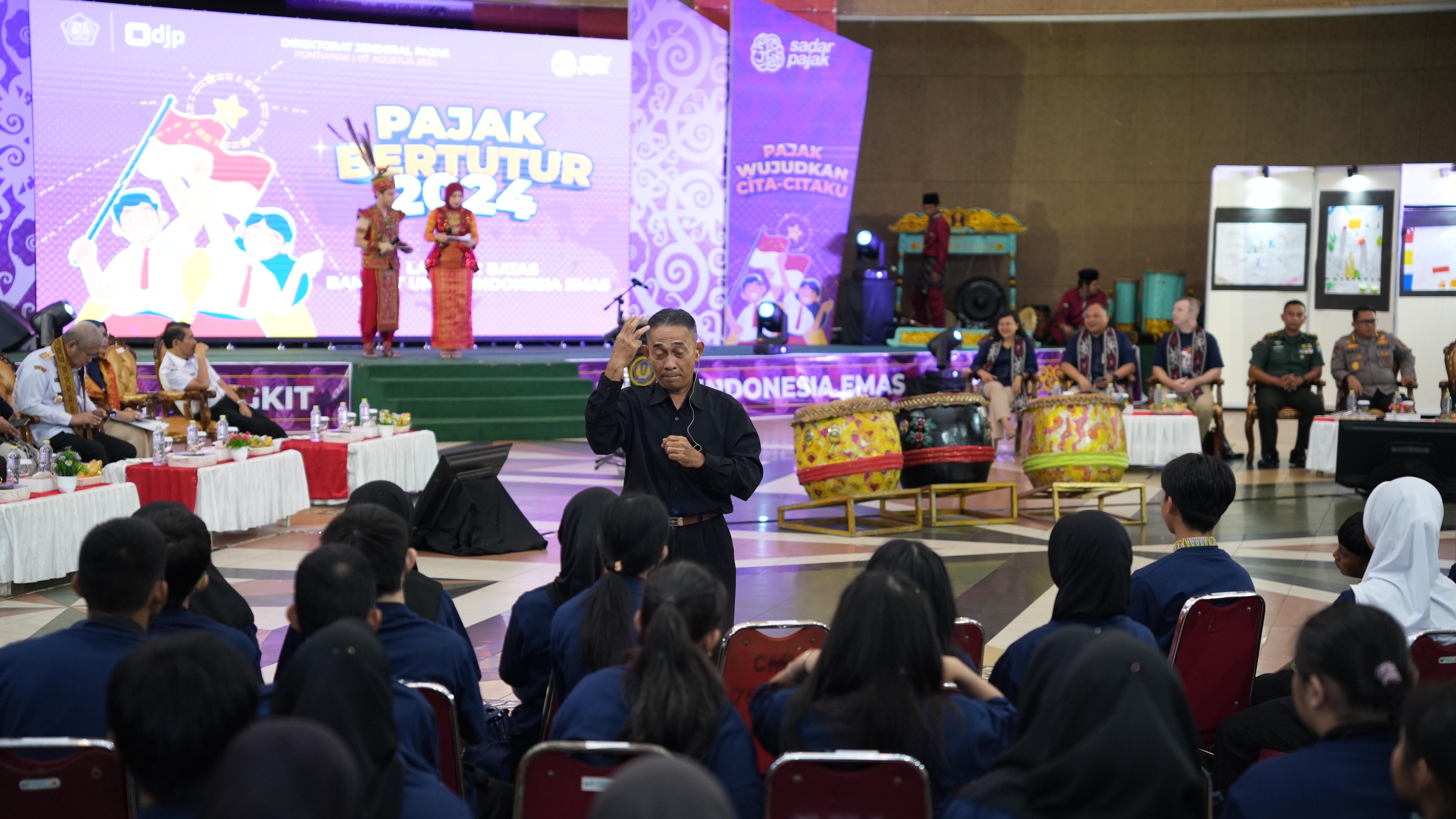 “Ini adalah investasi jangka panjang di bidang pendidikan,” kata Dwi Astuti saat membuka Pajak Bertutur yang diselenggarakan oleh Kantor Pusat DJP di Kota Pontianak (Rabu, 7/8). Sebagai future taxpayer, menurut Dwi, para generasi muda akan sangat menentukan masa depan Indonesia di masa mendatang. Oleh karena itu, DJP terus berupaya untuk menanamkan pemahaman mengenai pajak kepada para pelajar.