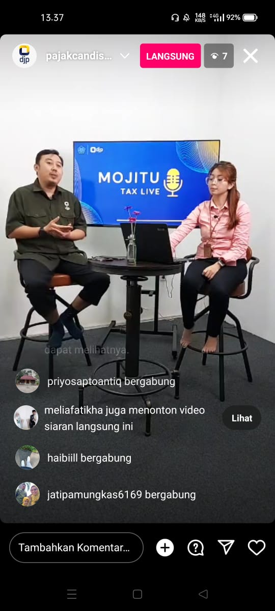 Kegiatan diawali dengan ucapan salam dan sapa kepada para pemirsa live IG dan perkenalan narasumber, yang dilanjutkan dengan dialog tanya jawab mengenai SPT Tahunan Badan.