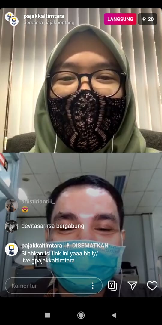 Kantor Wilayah Direktorat Jenderal Pajak Kalimantan Timur dan Utara (Kanwil DJP Kaltimtara) berkolaborasi dengan KPP Pratama Bontang dalam Kelas Pajak Daring dengan tema pelayanan perpajakan dalam era normal baru, yang dilangsungkan melalui fitur live Instagram (Jumat, 19/6).