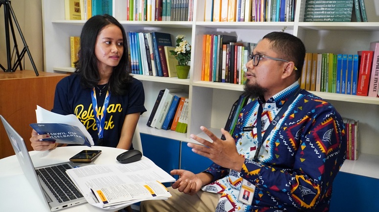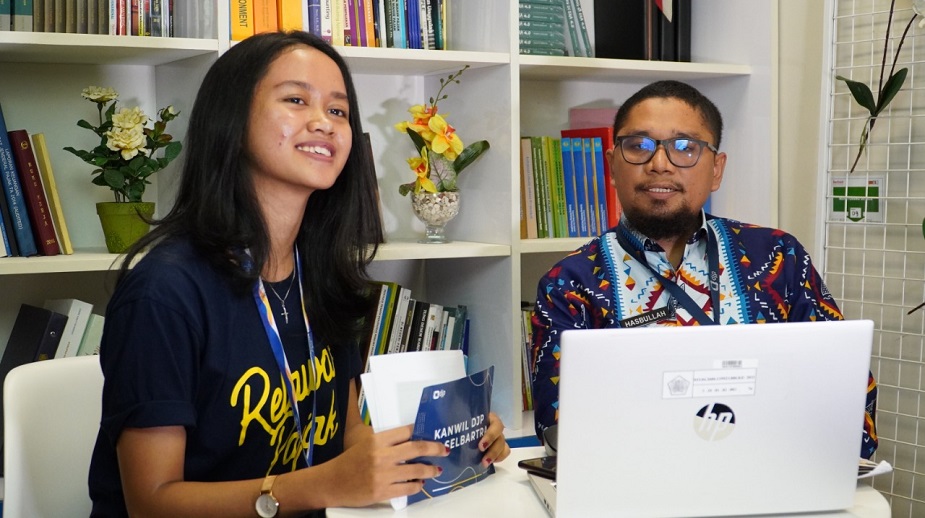 Fungsional Penyuluh Pajak Kanwil DJP Sulselbartra Hasbullah Ahiri berperan sebagai narasumber pada acara ini dengan didampingi Relawan Pajak Kanwil DJP Sulselbartra Agnes Monica Murdono sebagai moderator.