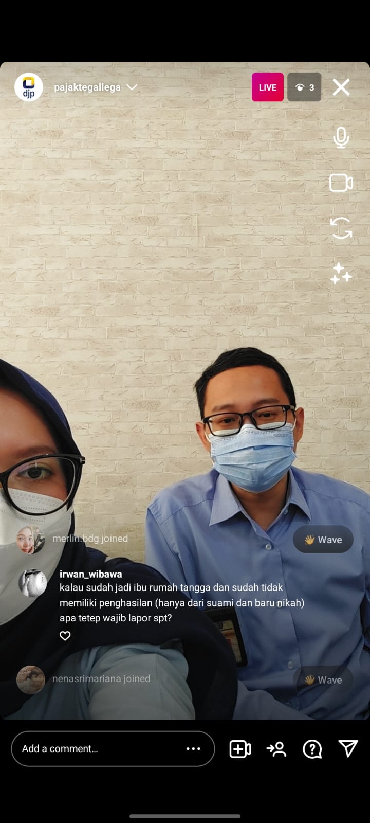 Kegiatan kelas pajak yang dilaksanakan pada pukul 09.00-10.00 WIB via instagram @pajaktegallega ini diikuti 54 peserta. Kegiatan ini dipandu oleh Tim Penyuluh Pajak Kantor Pelayanan Pajak (KPP) Pratama Bandung Tegallega, Dita Vega Amelia dan Andi Rizal.