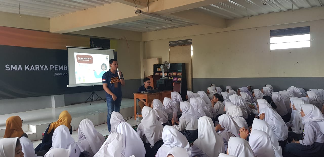 KPP Madya Bandung menyelenggarakan Pajak Bertutur di SMA Karya Pembangunan Margahayu Kabupaten Bandung (Jumat, 22/11). Acara dibuka dengan sambutan dari Kepala Sekolah Budi Kusmana dan dilanjutkan sambutan Kepala Seksi Pegolahan Data dan Informasi Wiwi Daryani.