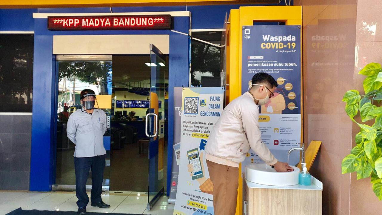 Menjelang dibukanya kembali Pelayanan Perpajakan Tatap Muka pada tanggal 15 Juni 2020, KPP Madya Bandung menyelenggarakan simulasi pelayanan di Tempat Pelayanan Terpadu (TPT) dan Pelayanan Drive Thru dengan tatanan normal baru (Jumat, 12/6).