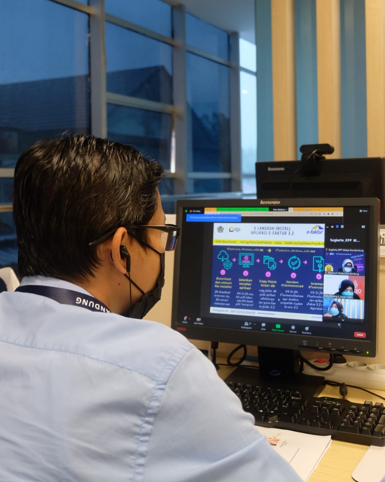 Memenuhi permintaan Wajib Pajak terkait konsultasi pembaruan Aplikasi e-Faktur 3.2, Tim Penyuluh Kantor Pelayanan Pajak (KPP) Madya Dua Bandung menggelar “Layanan Aplikasi Perpajakan 459” atau disingkat Lappak 459 secara daring melalui aplikasi zoom meeting, di Jalan Ibrahim Adjie No 372, Kecamatan Batununggal, Kota Bandung,(Rabu, 6/4).