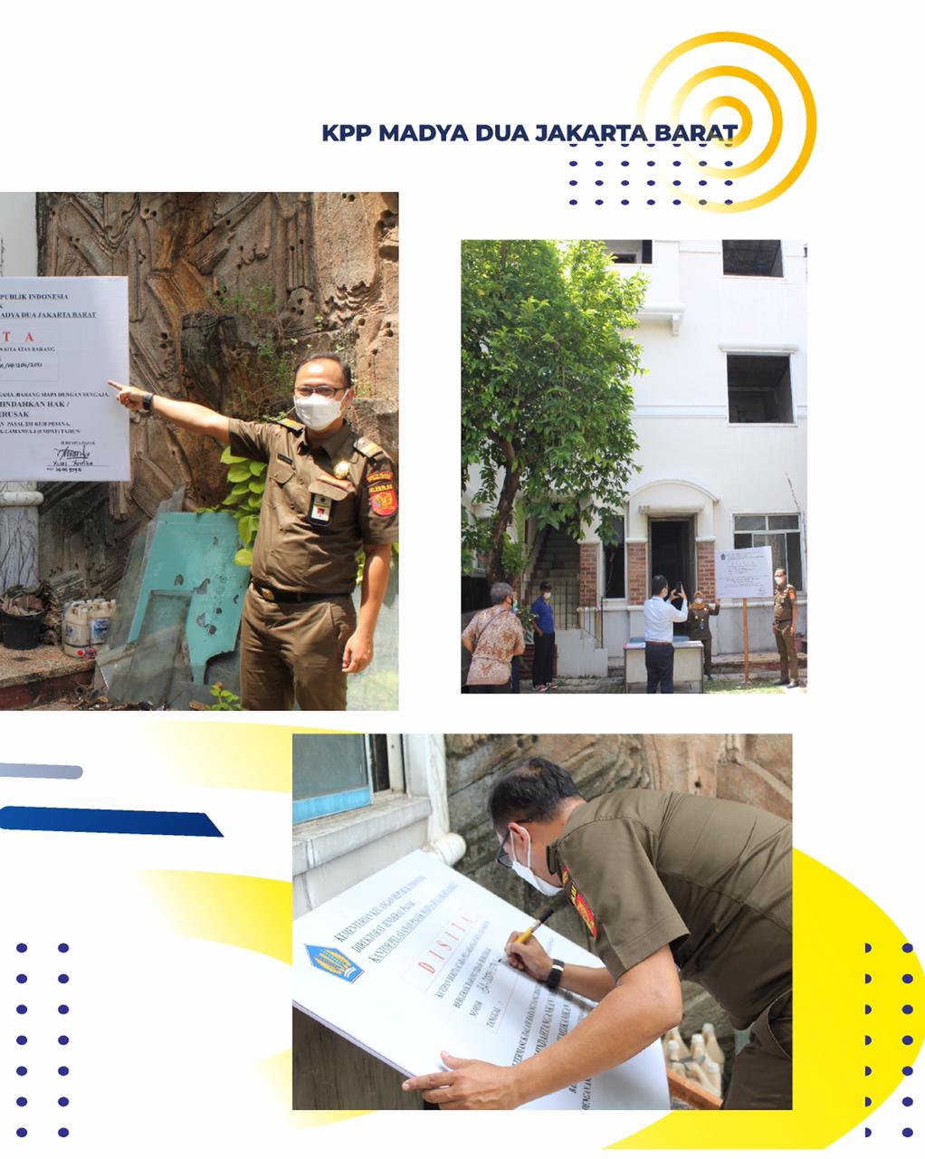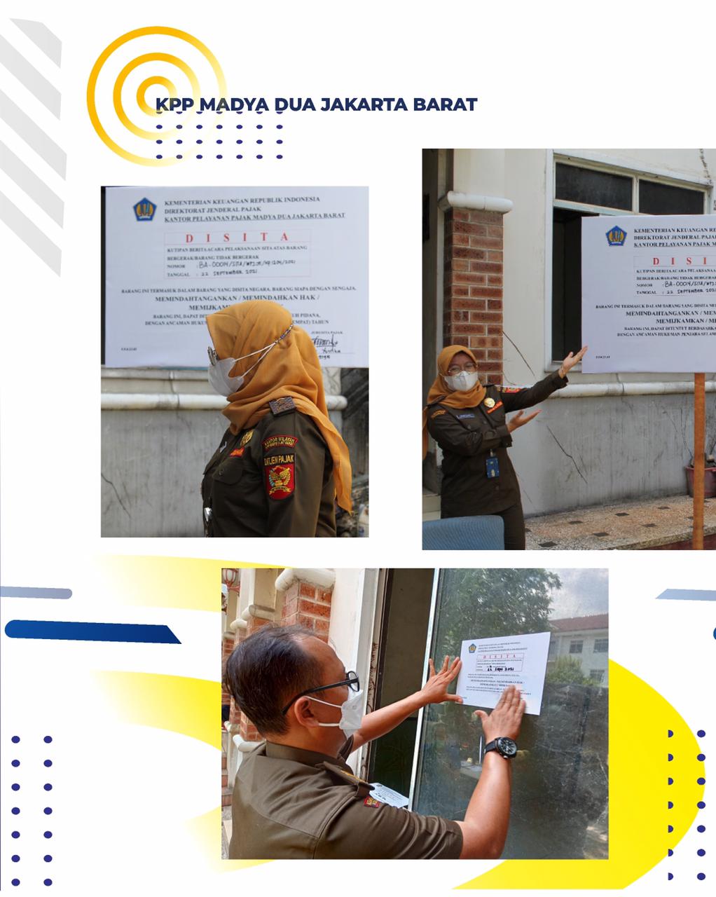 Kantor Pelayanan Pajak (KPP) Madya Dua Jakarta Barat melaksanakan penyitaan aset milik penanggung pajak yaitu tanah dan bangunan yang berlokasi di Jakarta Barat (Rabu, 22/9). Kegiatan ini dilakukan oleh Jurusita KPP Madya Dua Jakarta Barat Yusuf Yusrika dengan didampingi oleh Kepala Seksi Pemeriksaan, Penilaian, dan Penagihan Maryanti.