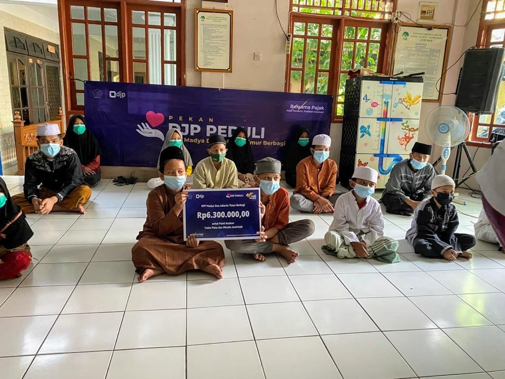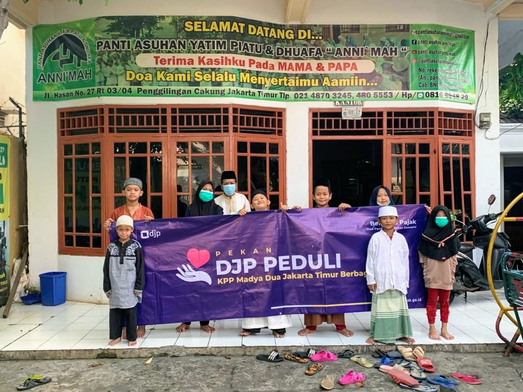 Kantor Pelayanan Pajak (KPP) Madya Dua Jakarta Timur menyelenggarakan kegiatan DJP Peduli dengan menyerahkan santunan kepada Yayasan Panti Asuhan Yatim Piatu dan Dhuafa Anni’mah yang berlokasi di Kelurahan Penggilingan, Cakung, Jakarta Timur (Rabu, 14/7).