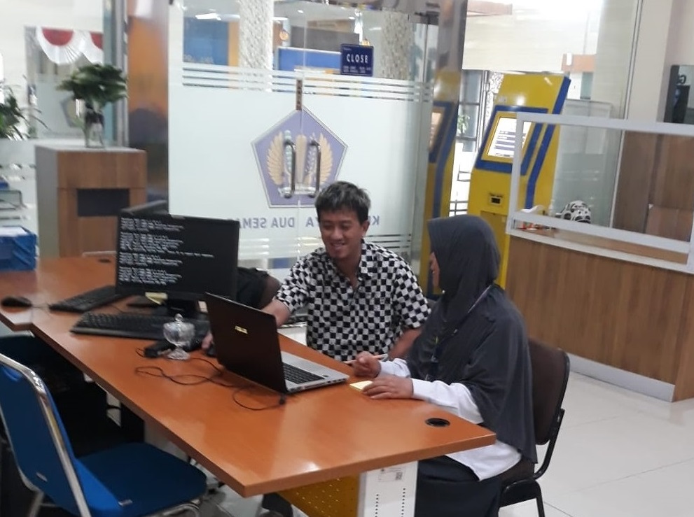Kedatangan wajib pajak disambut baik oleh Mila sebagai salah satu petugas helpdesk KPP Madya Dua Semarang.